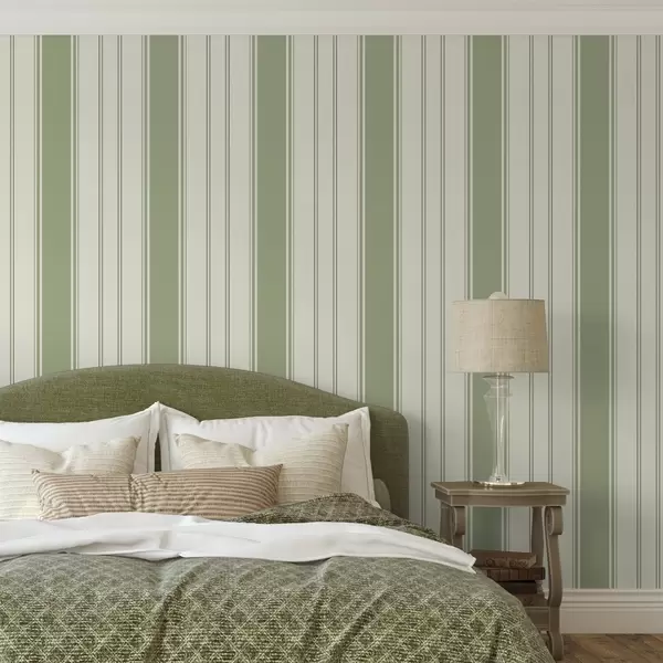 Tapeta Krémové pozadí se širokými světle zelenými pruhy Nr. a00561