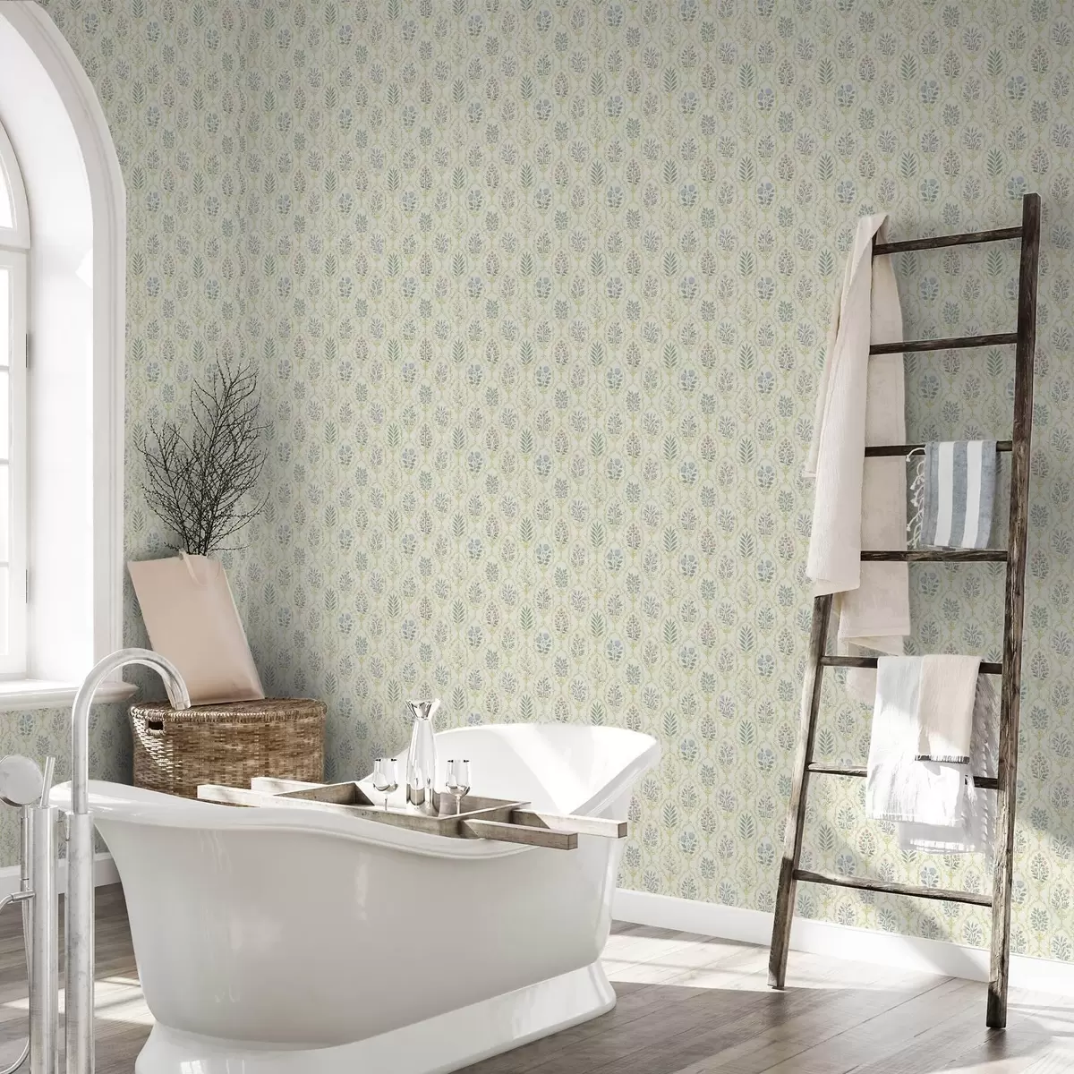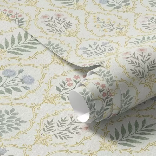 Tapeta Botanické medailony v mřížce, pastelové tóny Nr. a00579