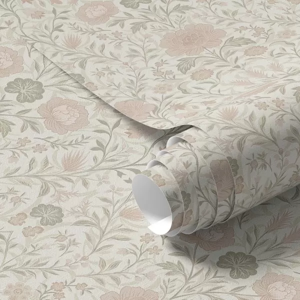 Tapeta Morrisův styl: pivoňky a trávy v jemných béžovo-zelených odstínech Nr. a00581
