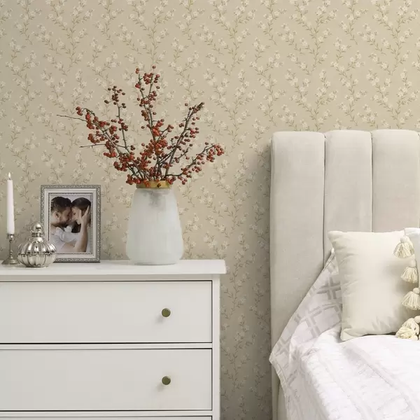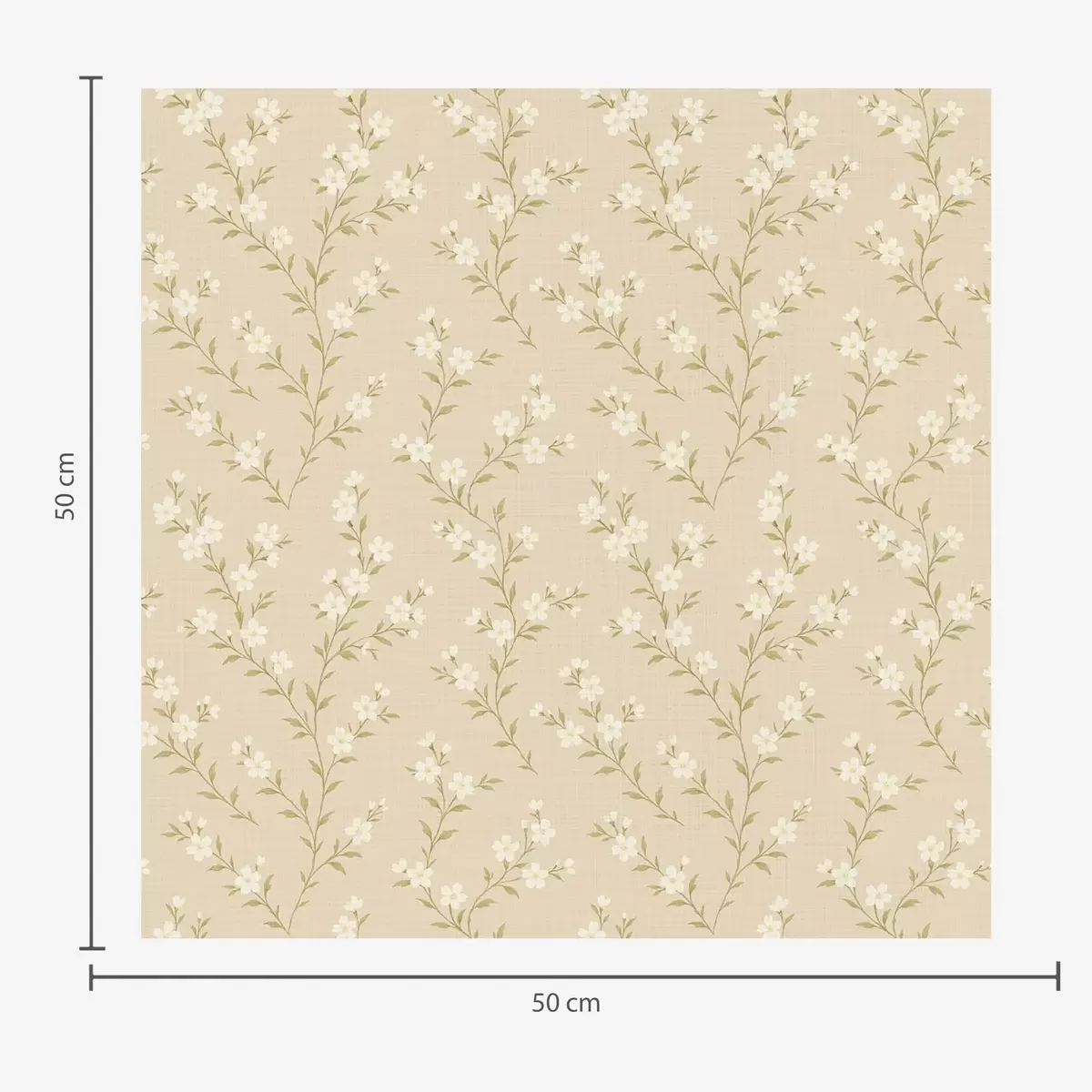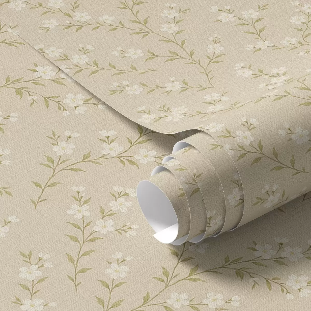 Tapeta Malé bílé větvičky na béžovém lněném pozadí Nr. a00584