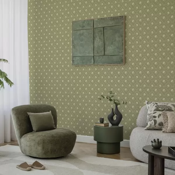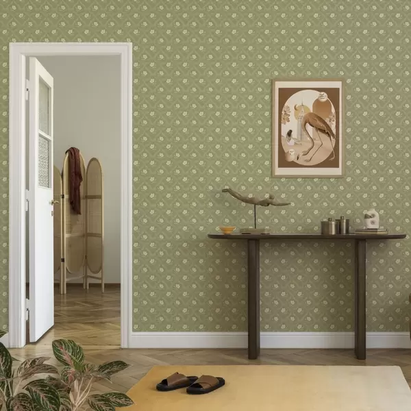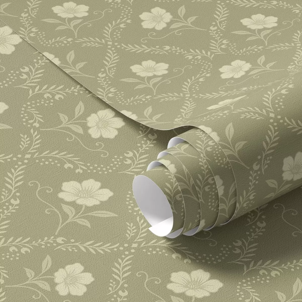 Tapety Olivový plot s krémovými květy, retro ornament a00585