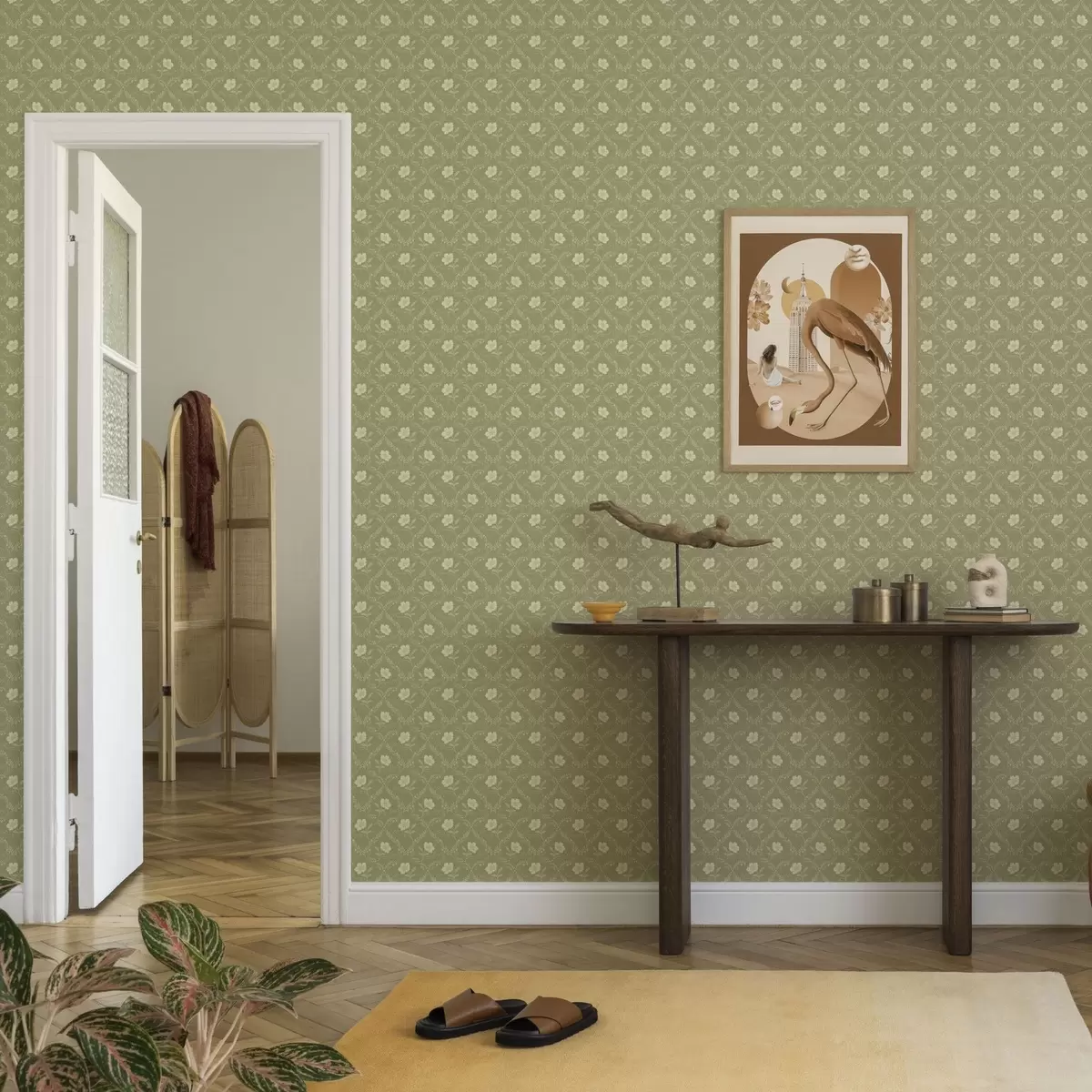 Tapeta Olivový plot s krémovými květy, retro ornament Nr. a00585