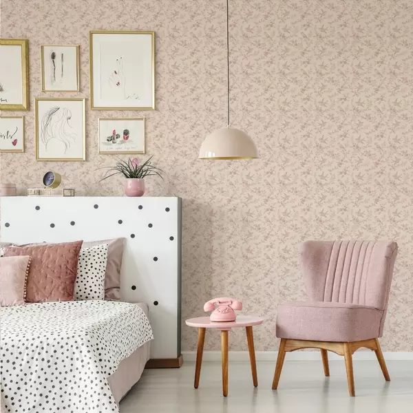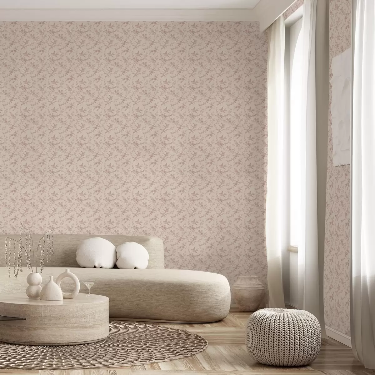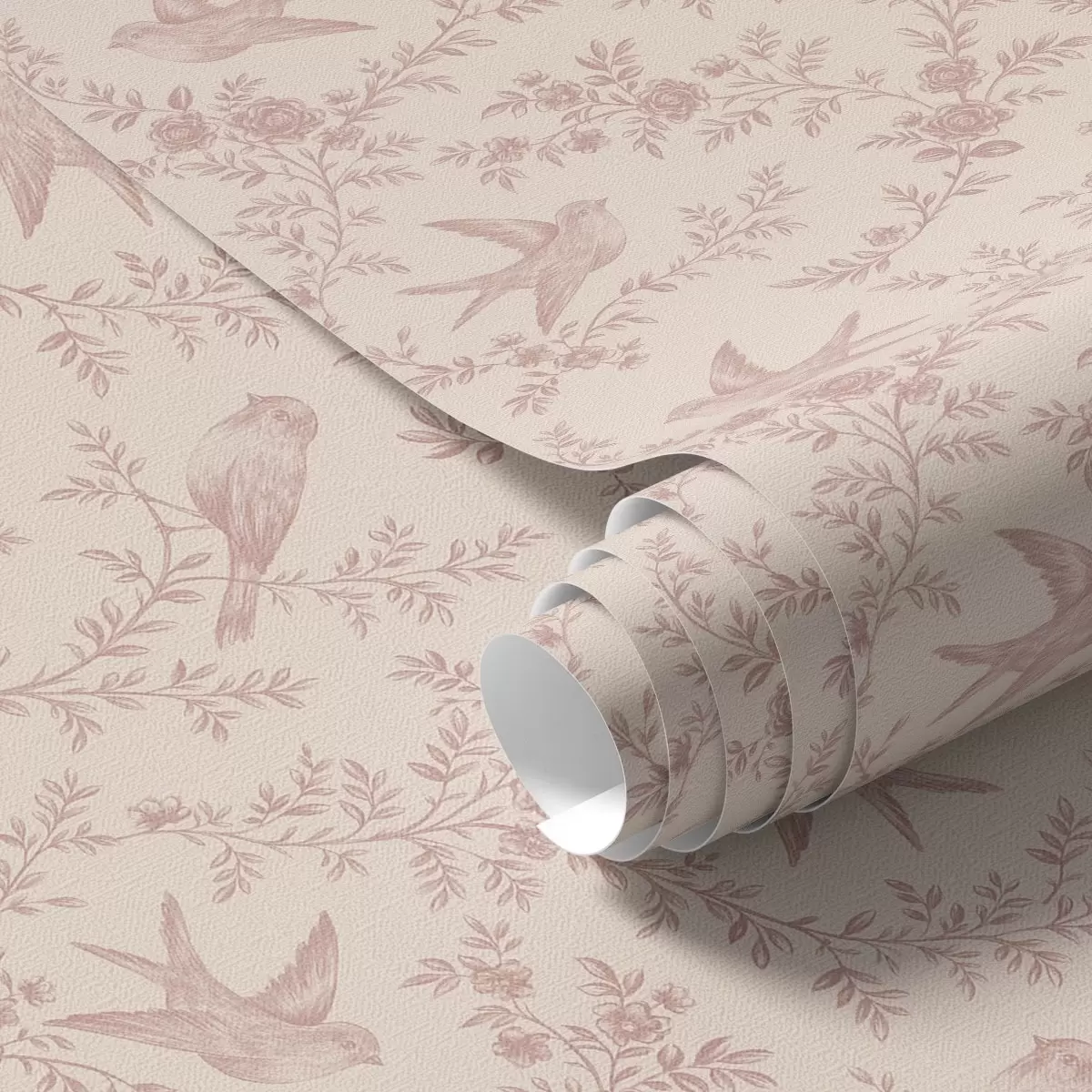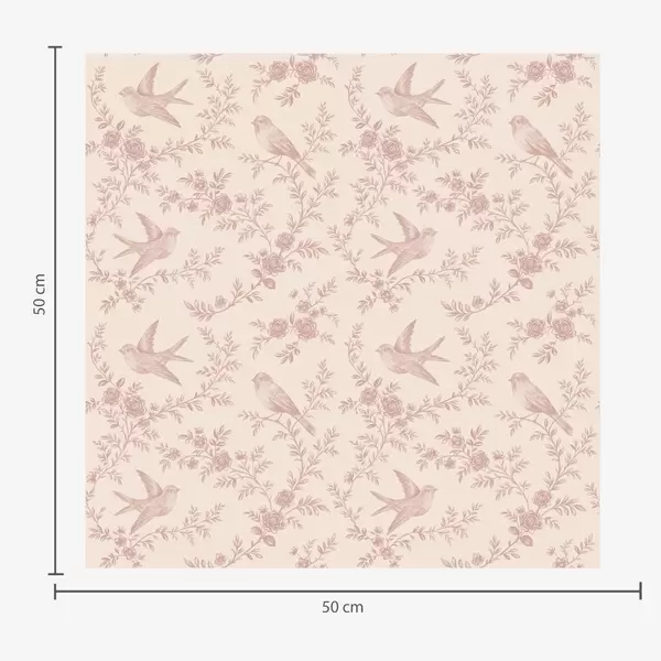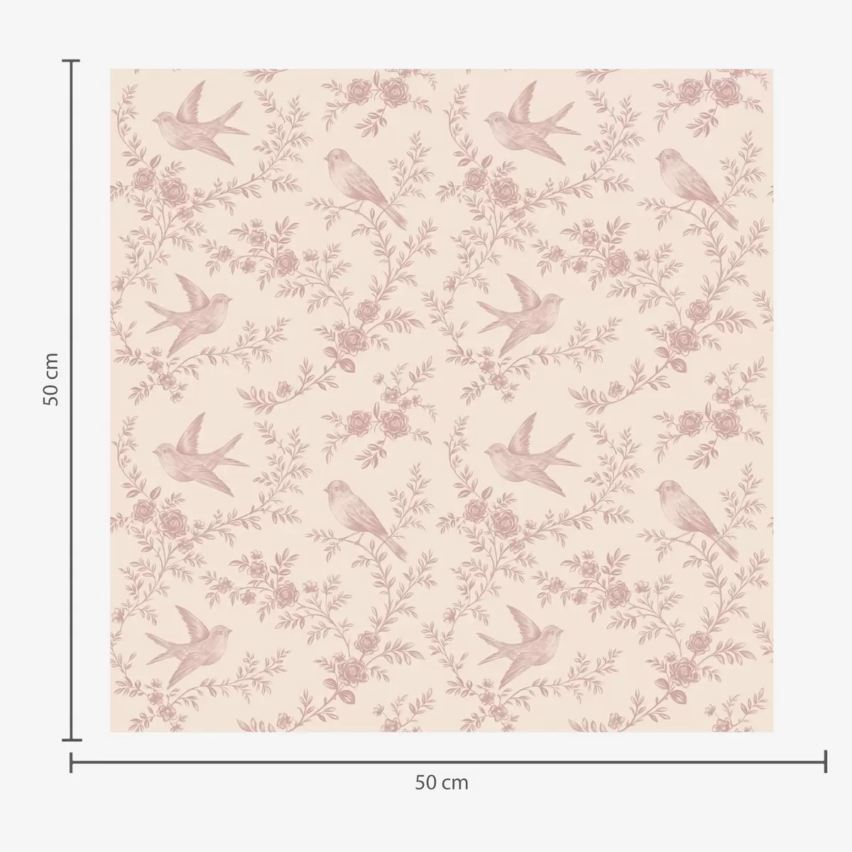 Tapeta Ptáci a růže, vintage vzor na pudrově růžovém podkladu Nr. a00587