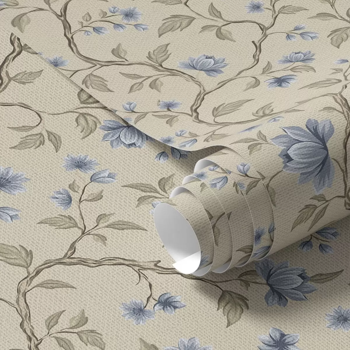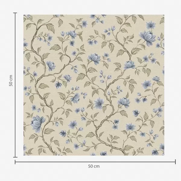 Tapeta Modré kvetoucí větve na lněném béžovém pozadí Nr. a00590