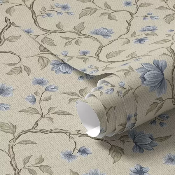 Tapety Modré kvetoucí větve na lněném béžovém pozadí a00590