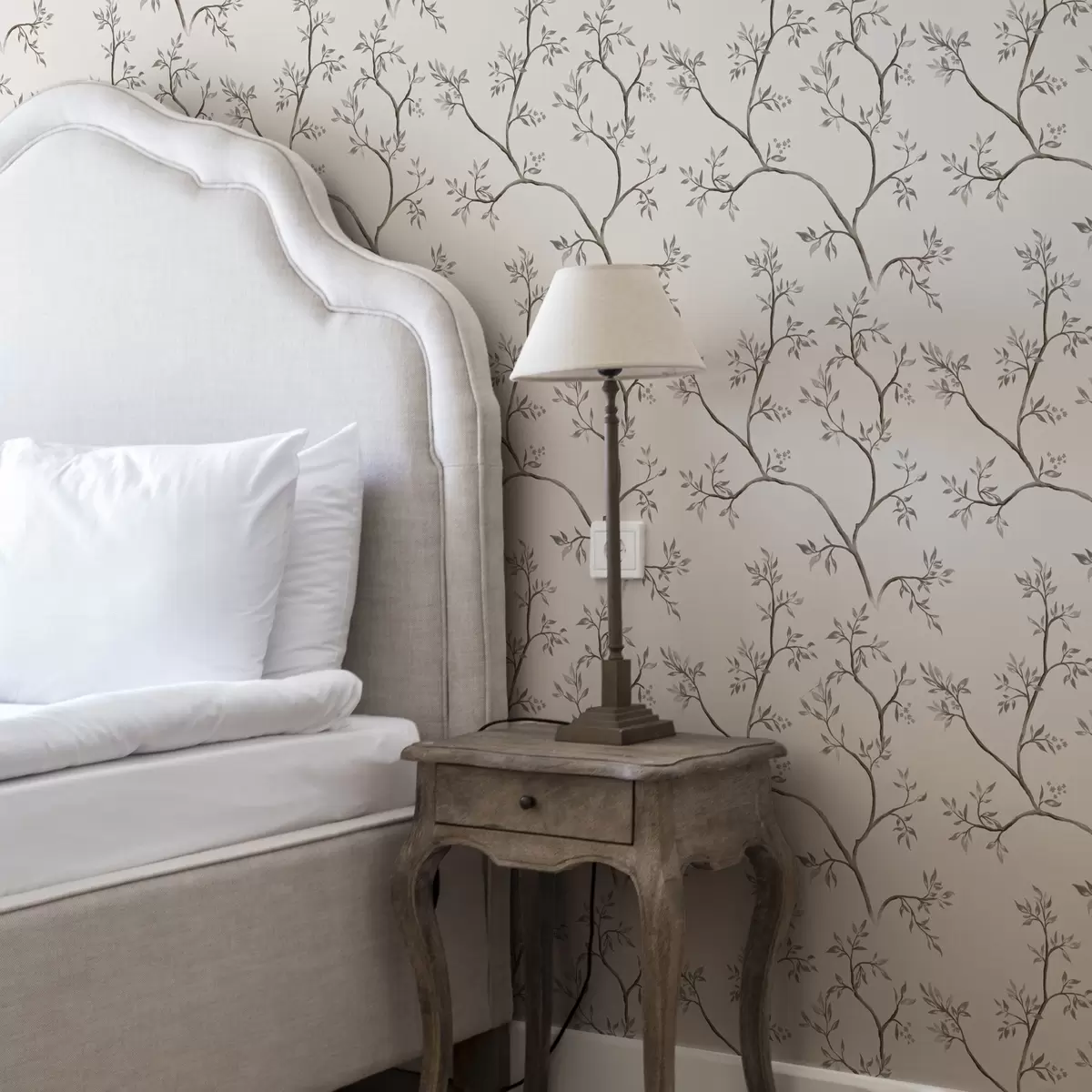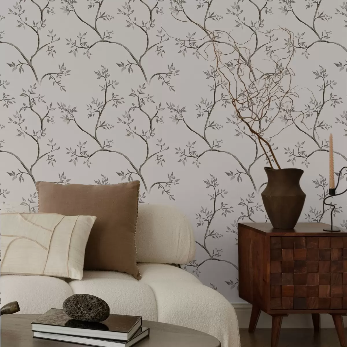 Tapeta Jemné listnaté větve na teplém krémovém pozadí Nr. a00597v1