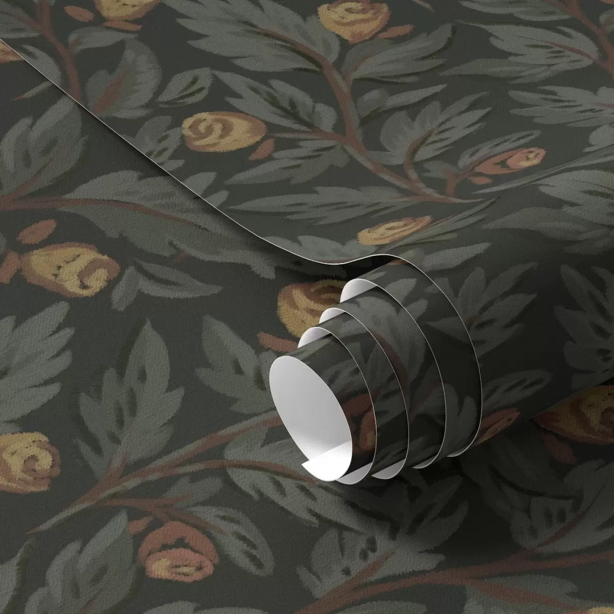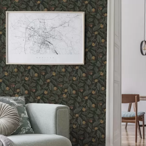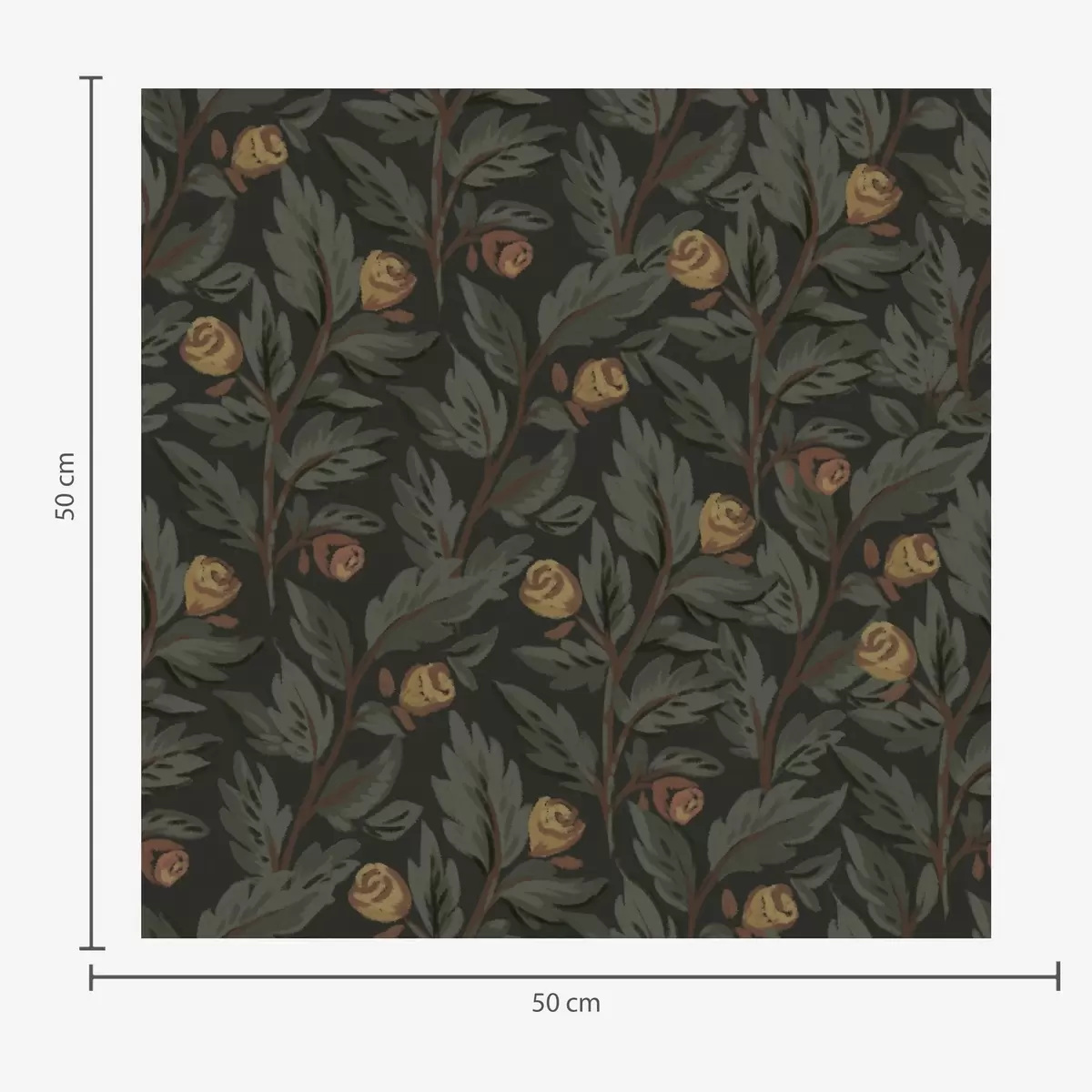 Tapeta Tmavý květinový vzor se žlutými poupaty a listy Nr. a00598