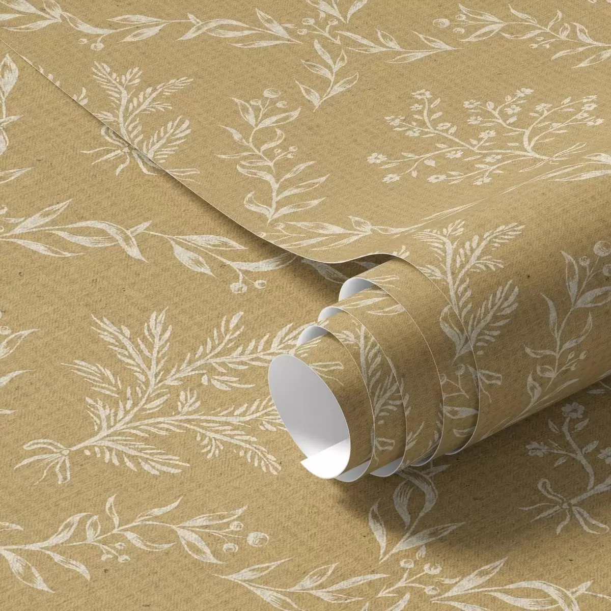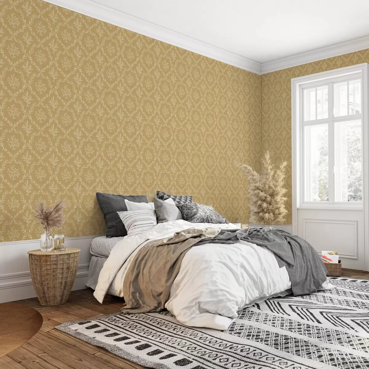 Tapeta Bílé věnce z bylin a květin na hořčičném pozadí Nr. a00599