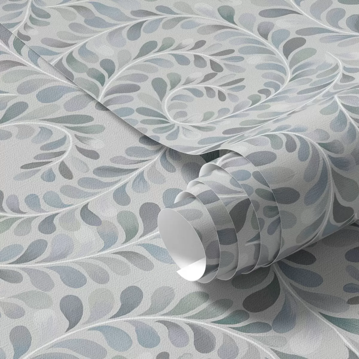 Tapeta Spirálovité listy v modro-šedo-zelené paletě Nr. a00602