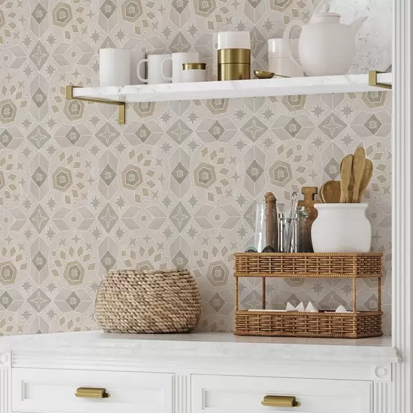 Tapeta Geometrický mozaikový vzor v teplých béžových odstínech Nr. a00606
