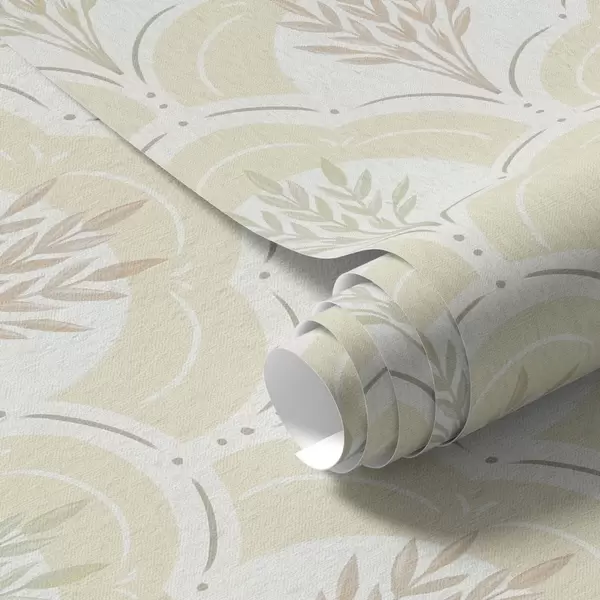 Tapeta Pšenice pod oblouky, jemný krémově žlutý akvarelový podklad Nr. a00607