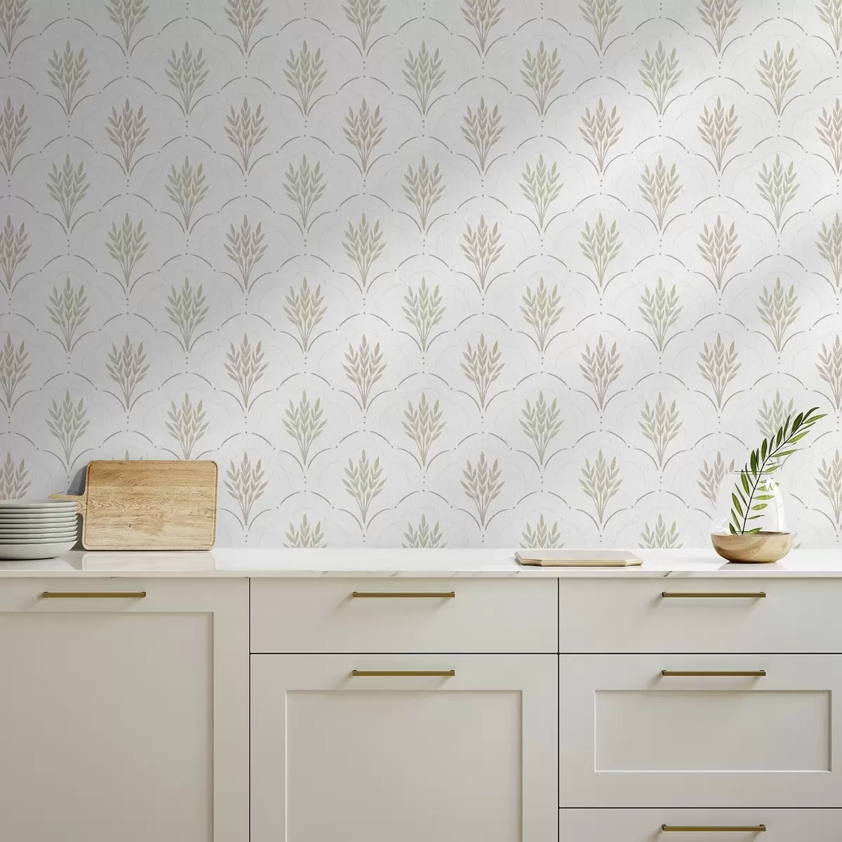 Tapeta Pšenice v obloukovém ornamentu, jemné pastelové barvy na bílém pozadí Nr. a00607v1