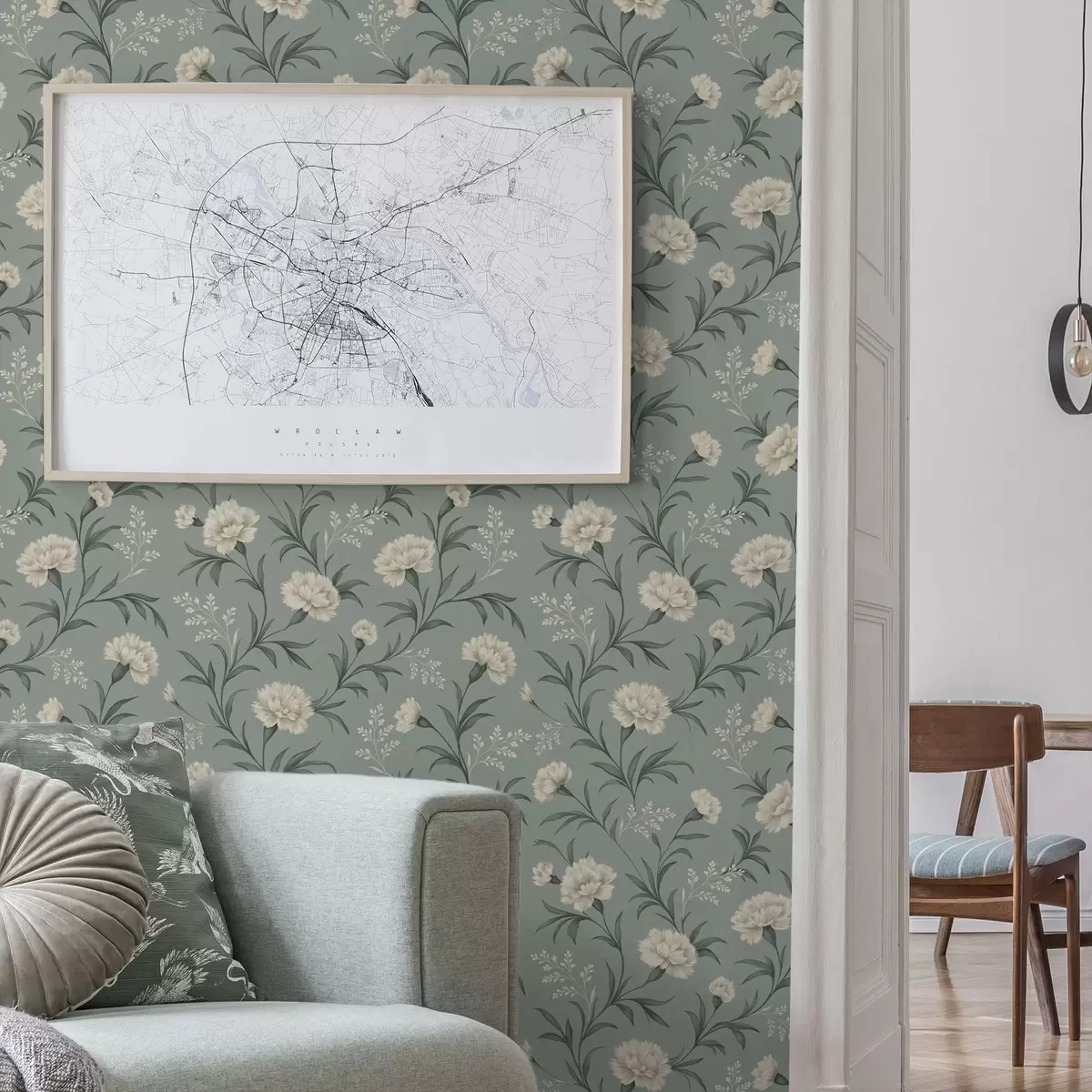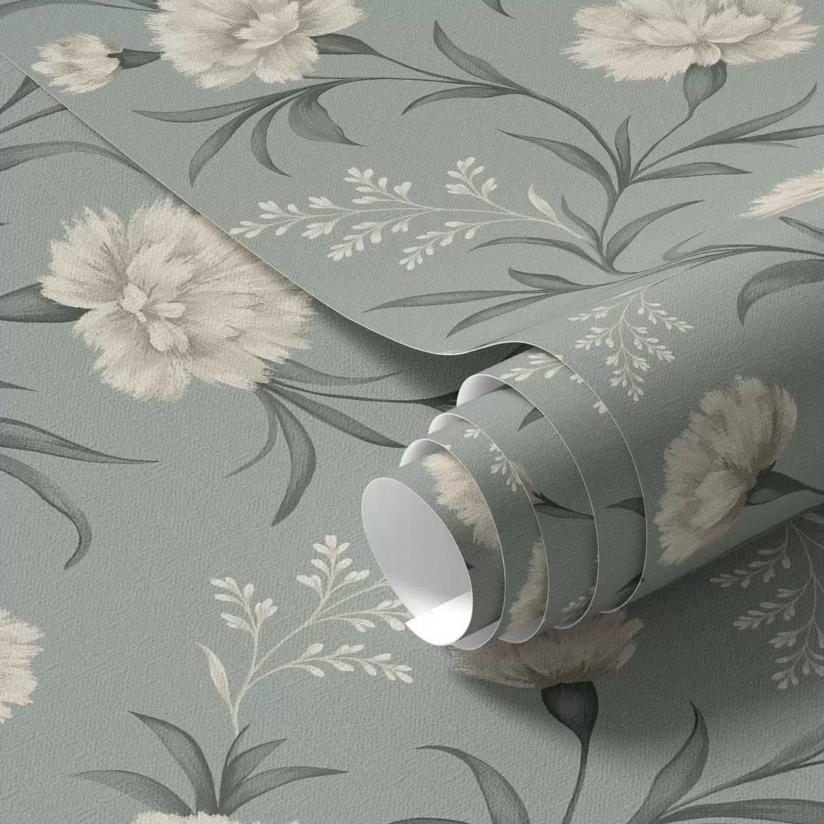 Tapeta Pudrové karafiáty na šedozeleném pozadí, rafinovaný potisk Nr. a00610