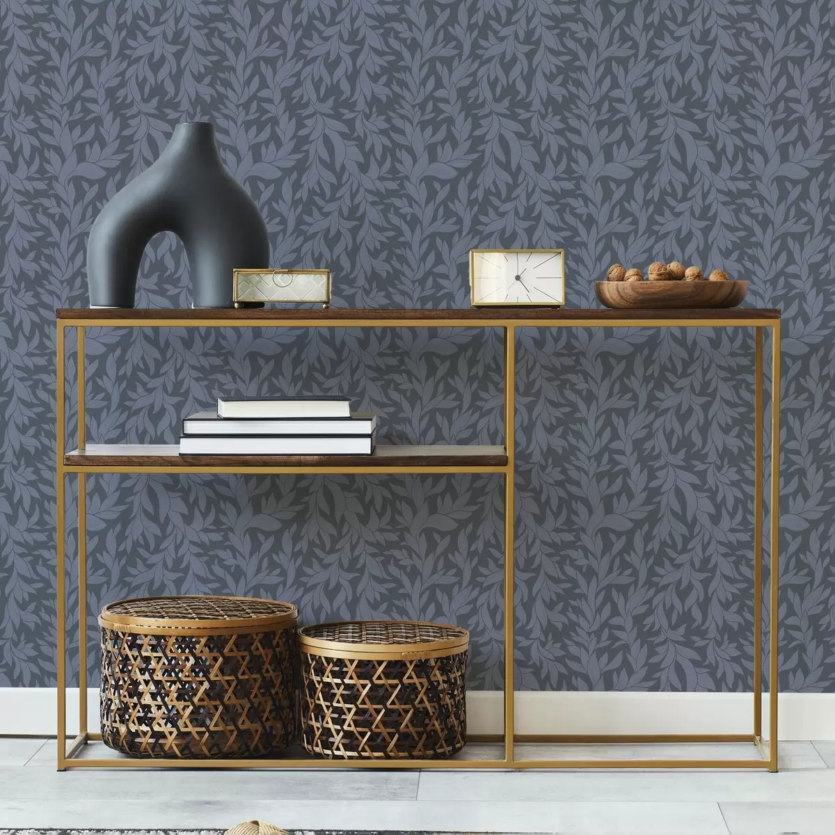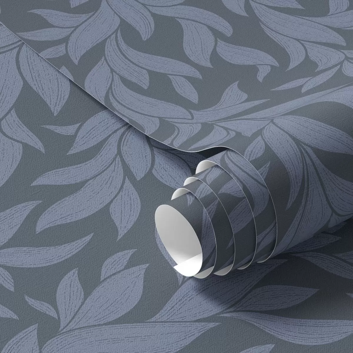Tapeta Grafitově modré pozadí a modré listy, texturovaná čára Nr. a00616v2