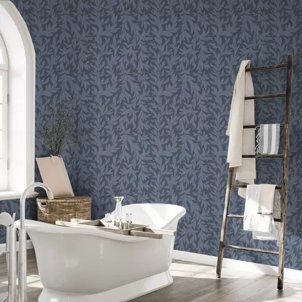 Tapeta Grafitově modré pozadí a modré listy, texturovaná čára Nr. a00616v2