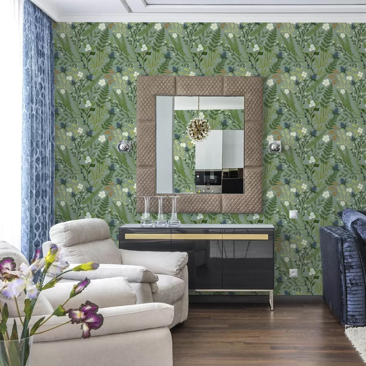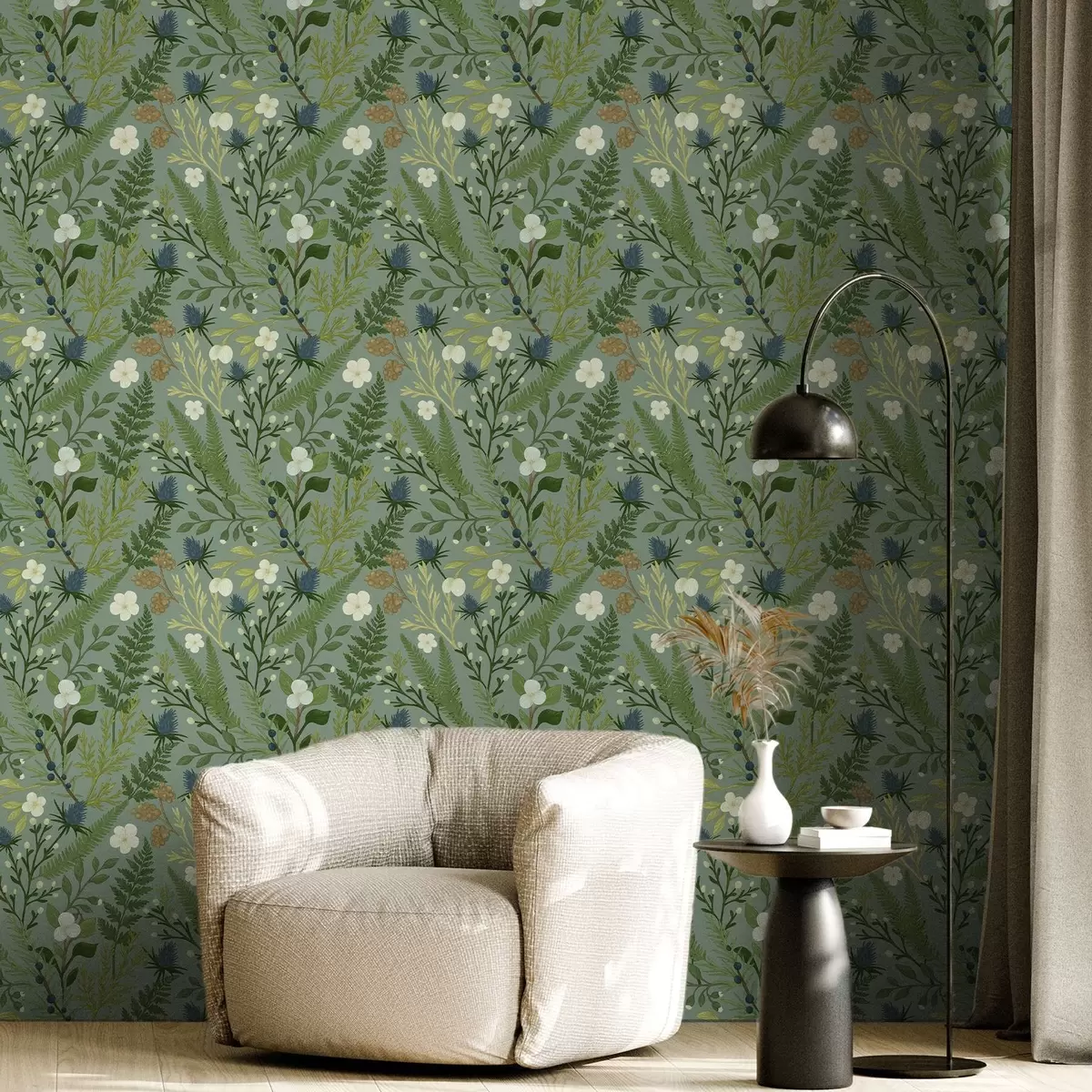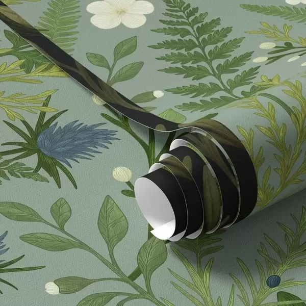 Tapeta Lesní bylinky, čekanka a lesní plody na mátovém pozadí Nr. a00621v1