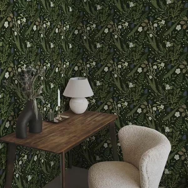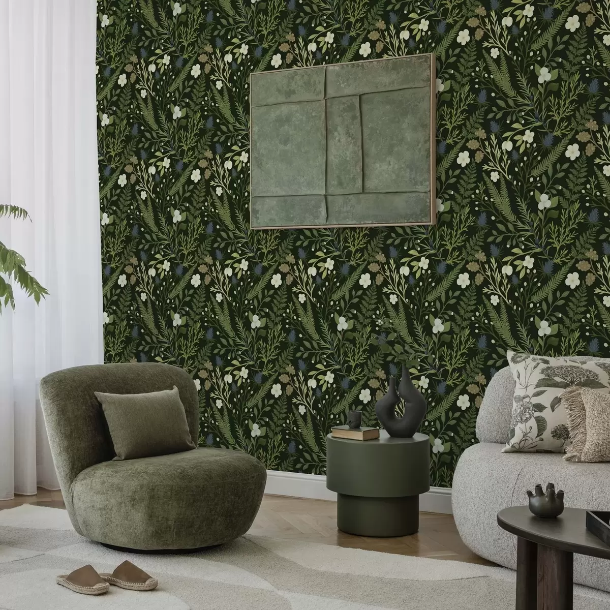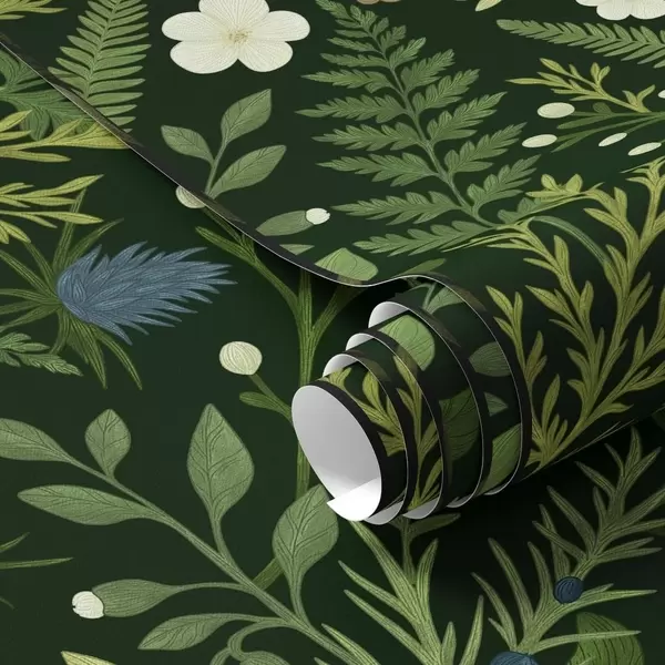 Tapeta Lesní bylinky a bobule na tmavě zeleném pozadí Nr. a00621v2
