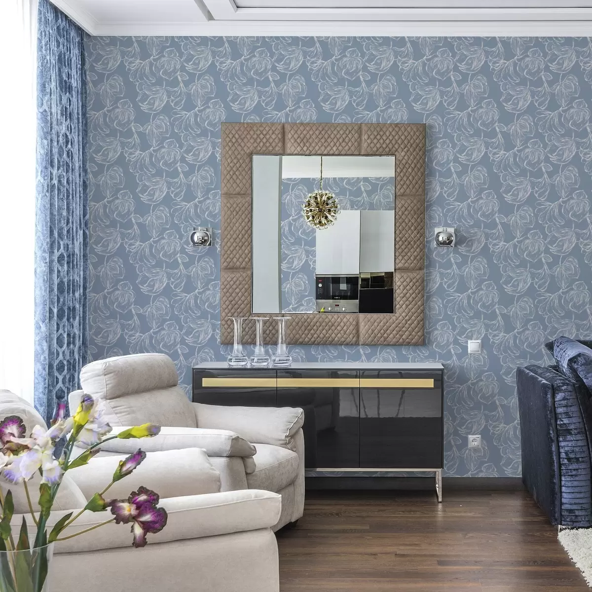 Tapeta Světle modré pozadí s křídovými obrysy květin Nr. a00625v3