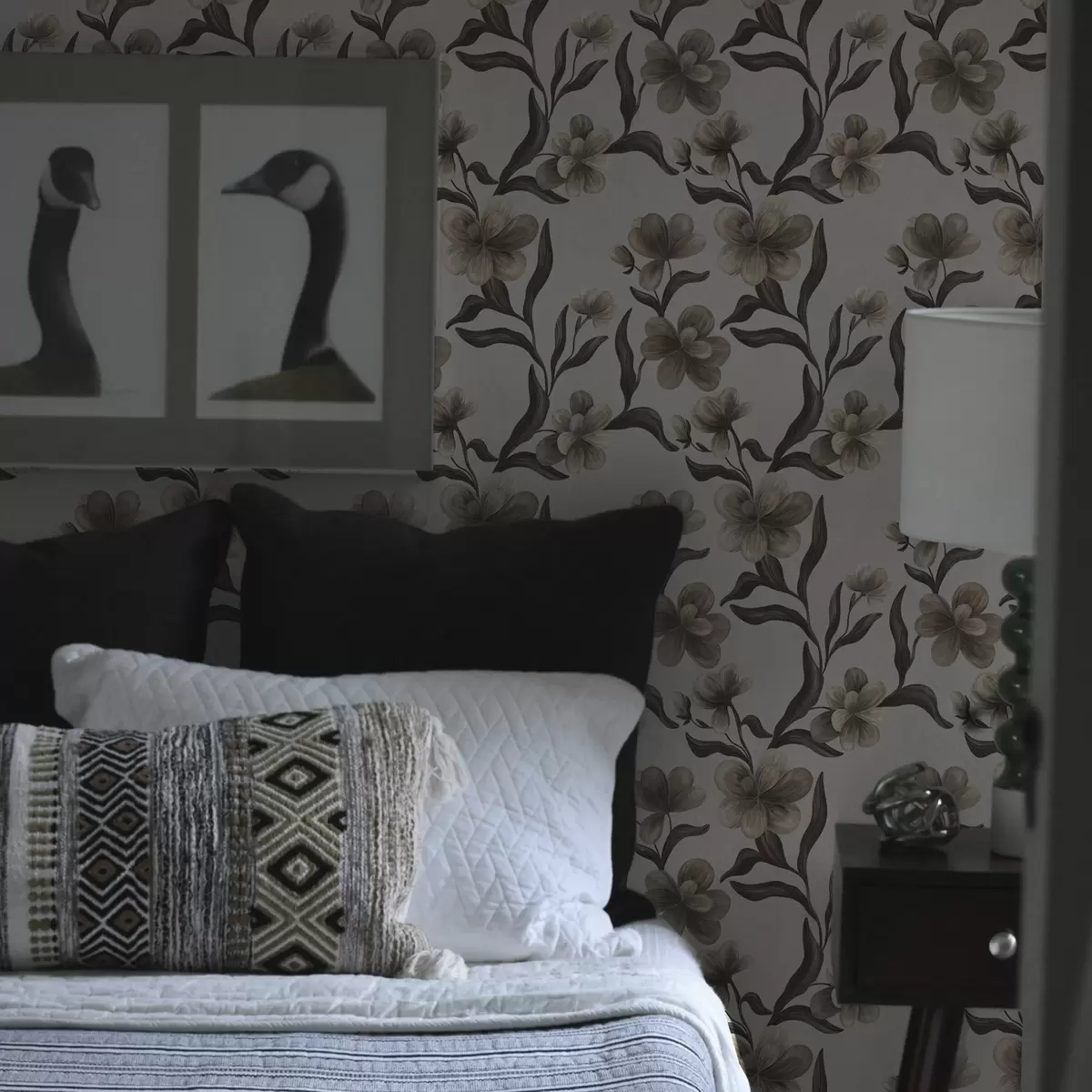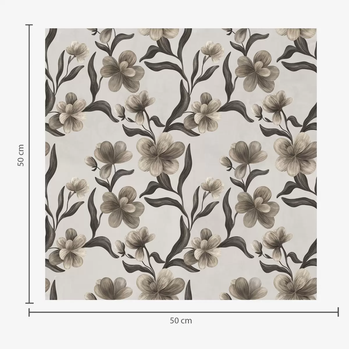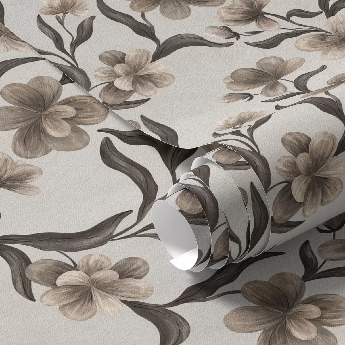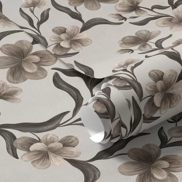 Tapeta Béžové květy a tmavé větve na světle šedém pozadí Nr. a00626v1