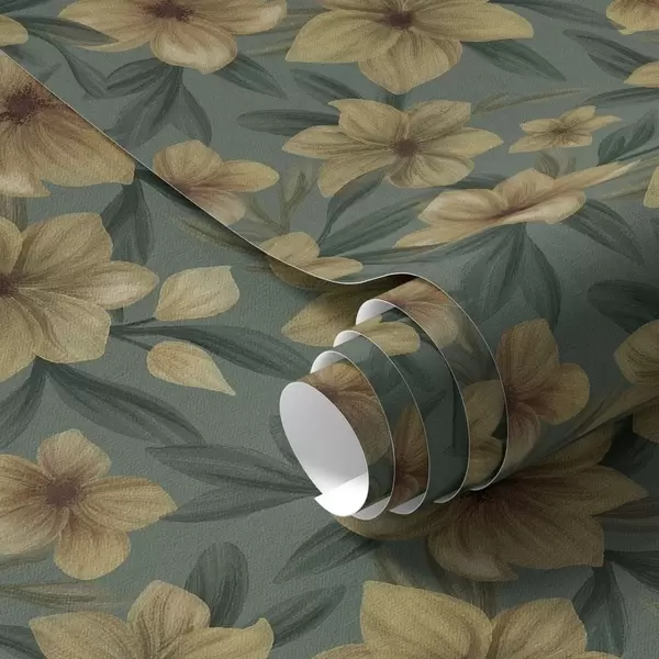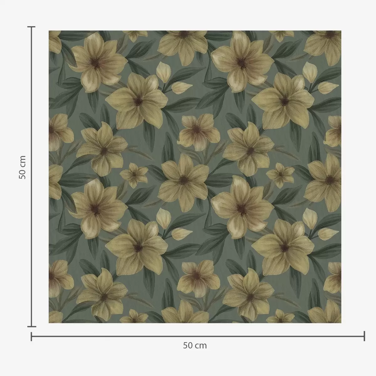 Tapeta Okrové květy na tmavě zeleném pozadí, hustý vzor Nr. a00628