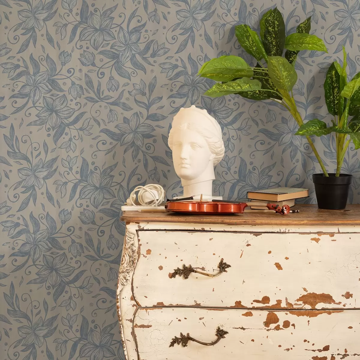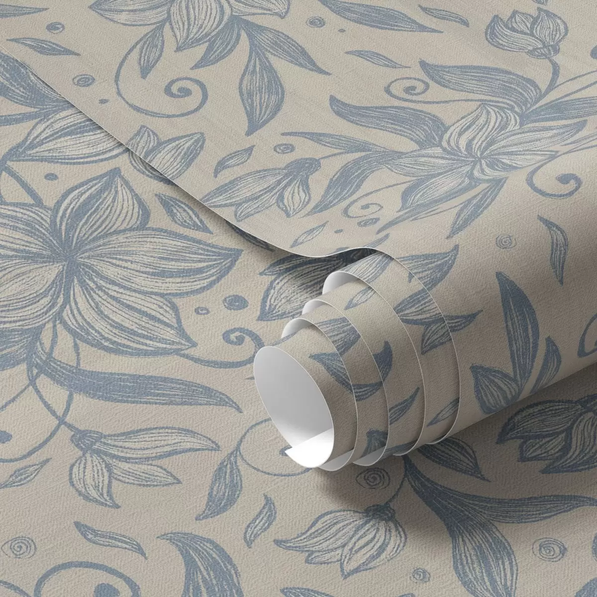 Tapeta Modrý lineární květinový vzor na teplé béžové barvě Nr. a00630v2