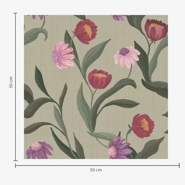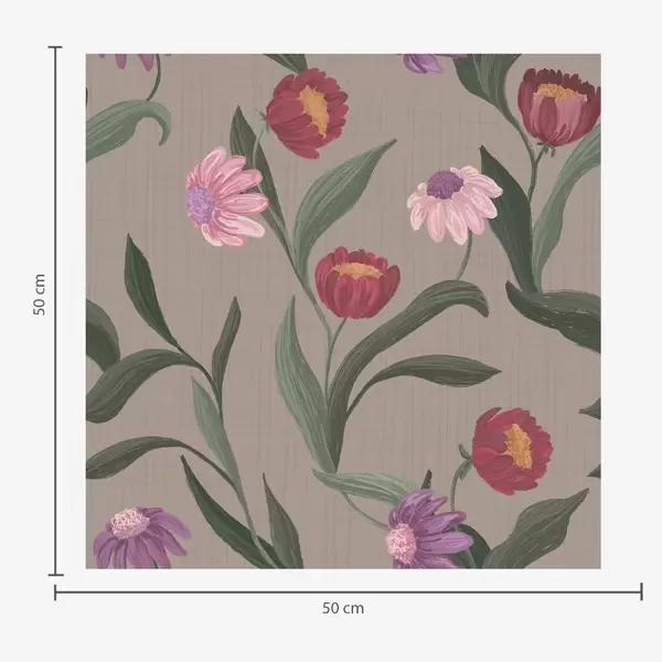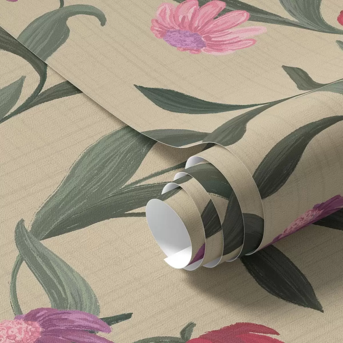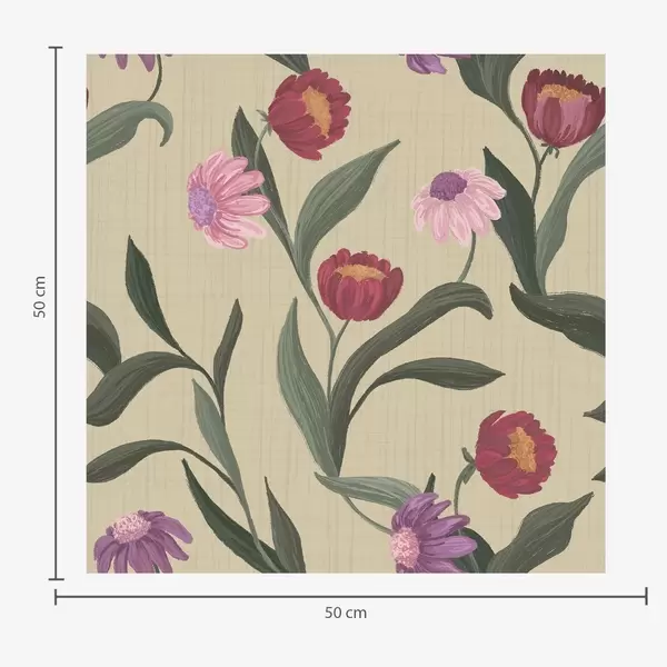 Tapeta Růžovočervené květy na béžovém pozadí, ručně malovaná textura Nr. a00631
