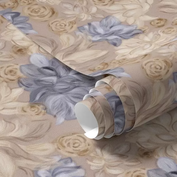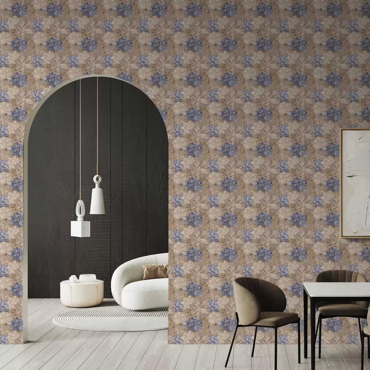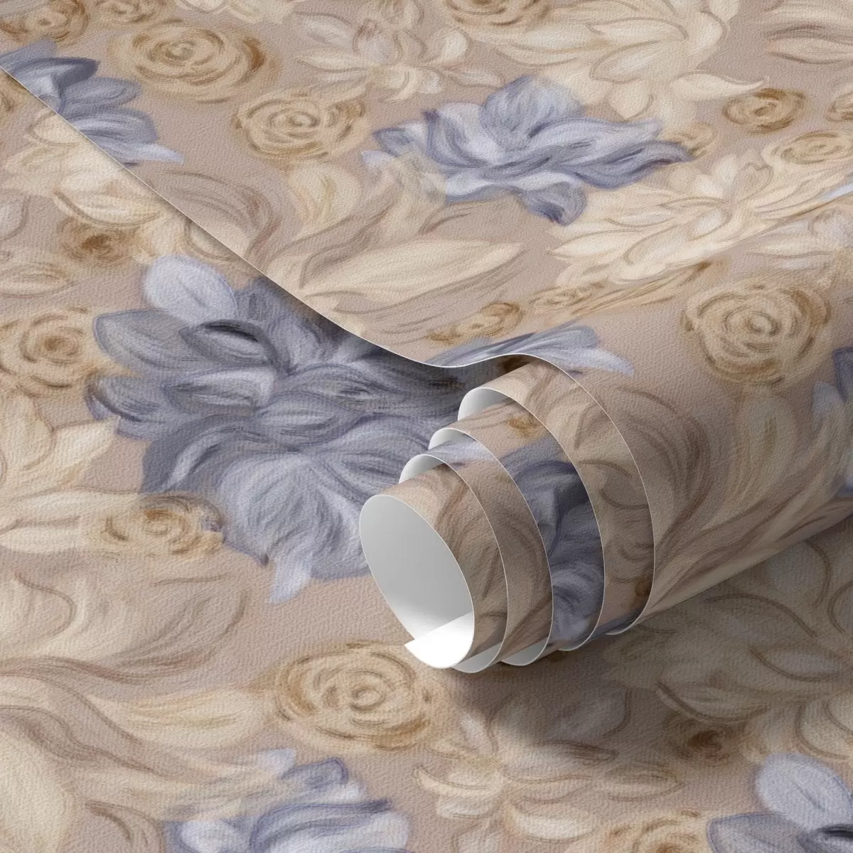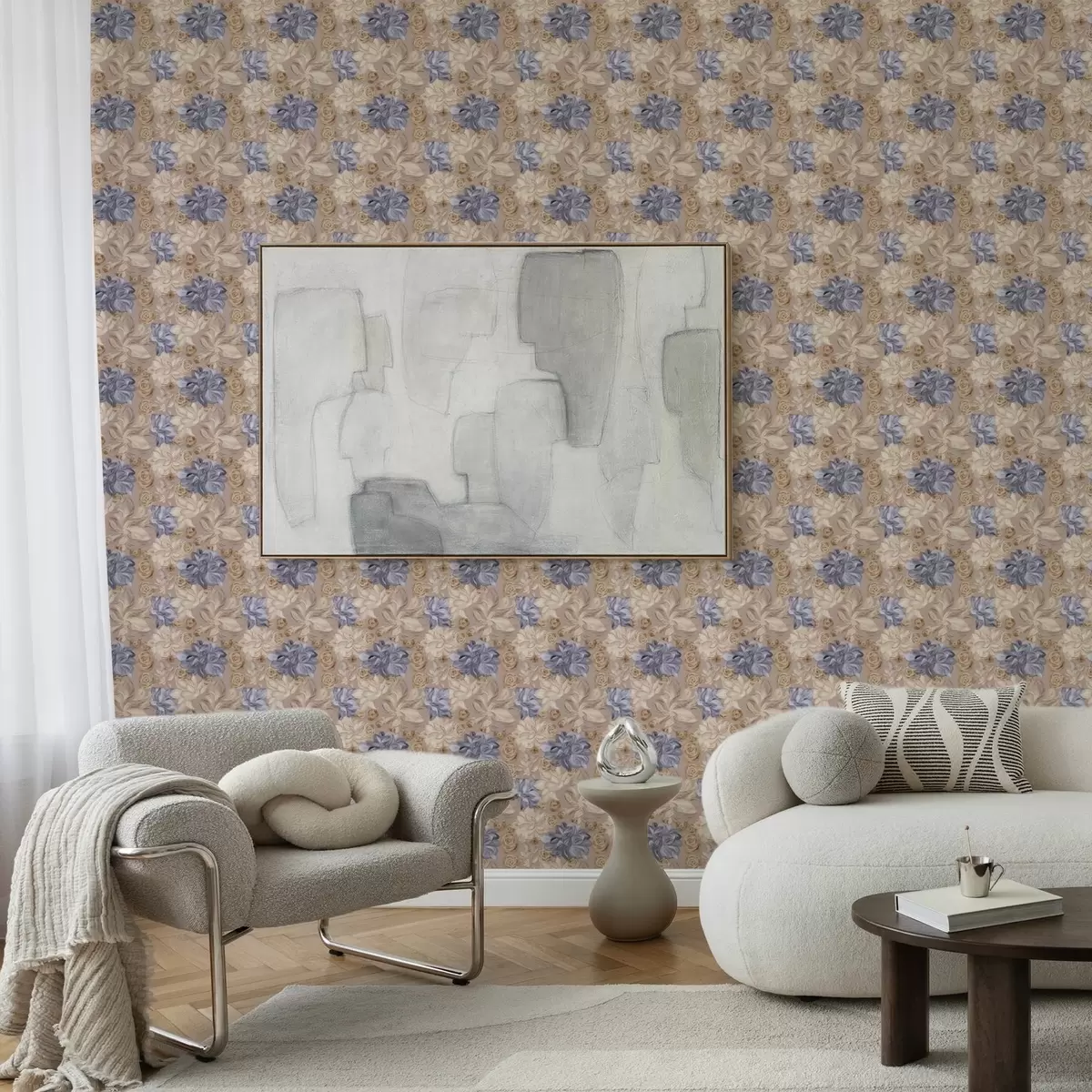 Tapeta Svěží krémové a modré květiny v pastelových barvách Nr. a00634