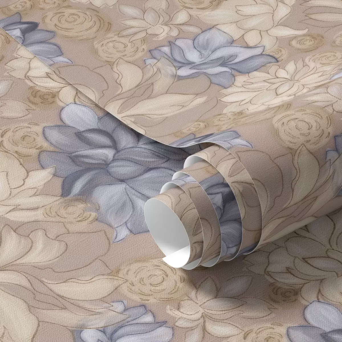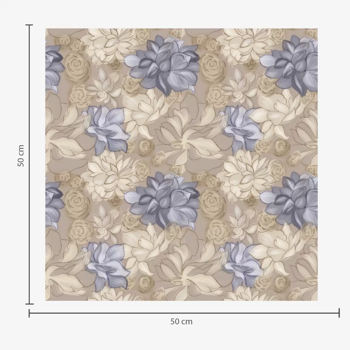 Tapeta Krémové a modré květy na teplém béžovém pozadí Nr. a00634v1