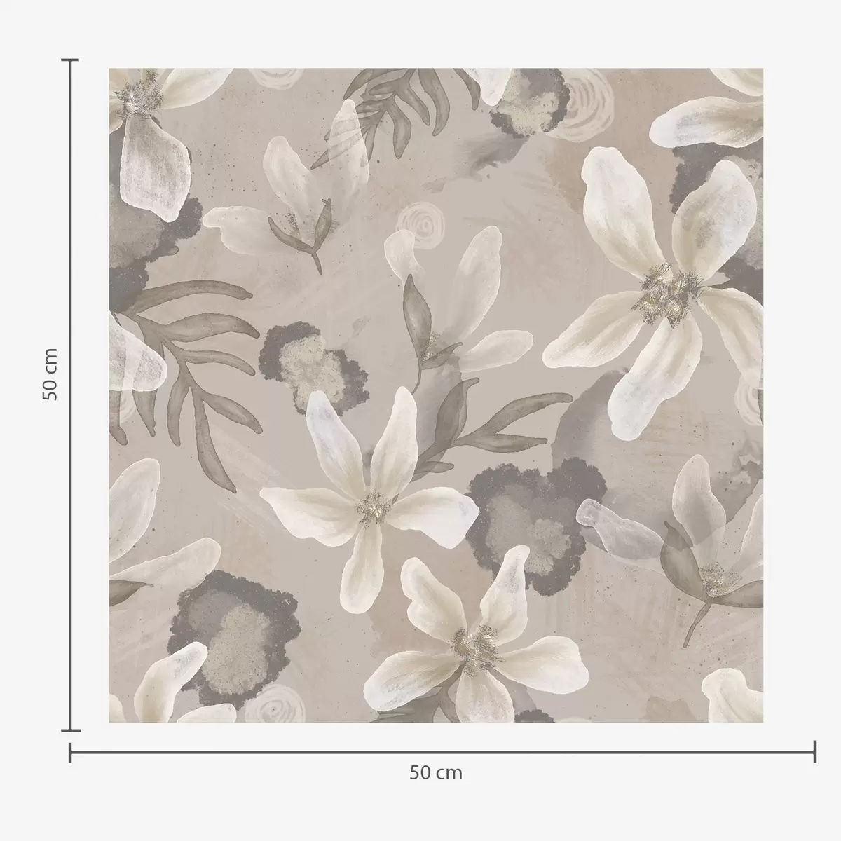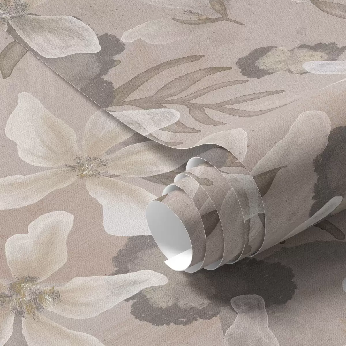 Tapeta Velké béžové květy s abstraktními akvarelovými skvrnami Nr. a00635