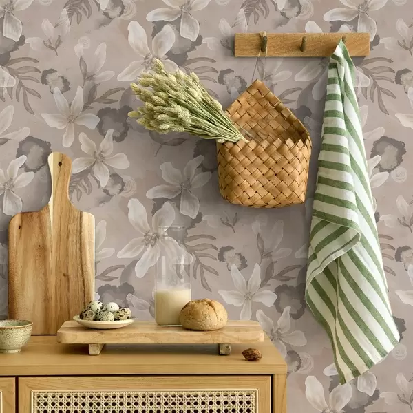 Tapeta Velké béžové květy s abstraktními akvarelovými skvrnami Nr. a00635