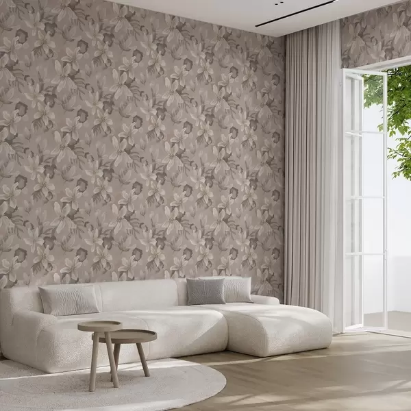 Tapeta Velké béžové květy s abstraktními akvarelovými skvrnami Nr. a00635