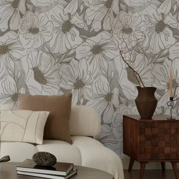 Tapeta Lineární květiny v monochromatické béžovo-šedé paletě Nr. a00636