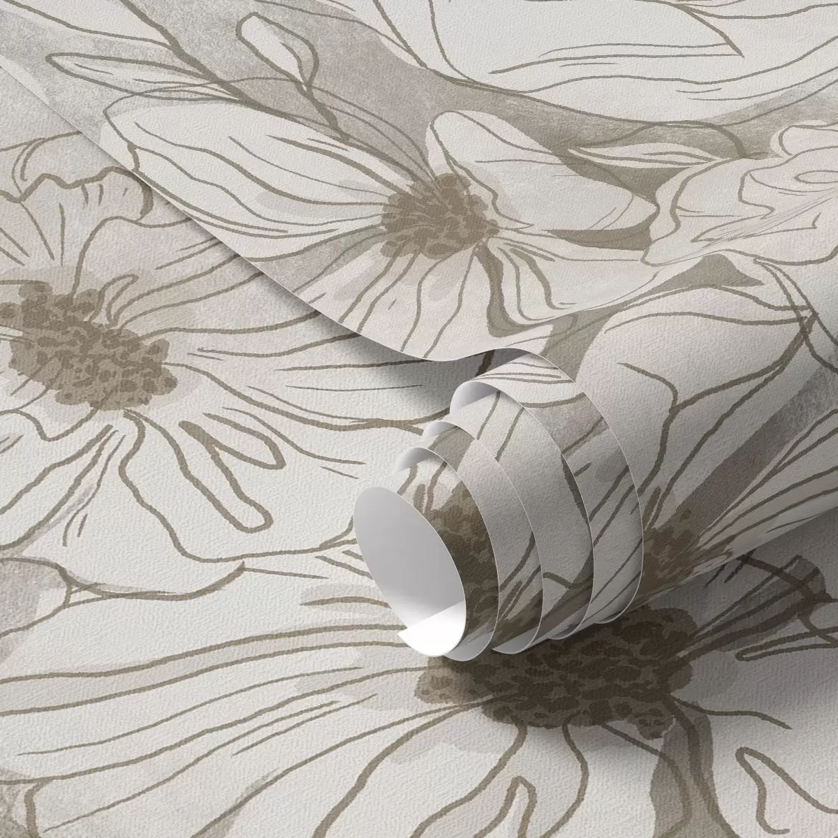 Tapeta Lineární květiny v monochromatické béžovo-šedé paletě Nr. a00636