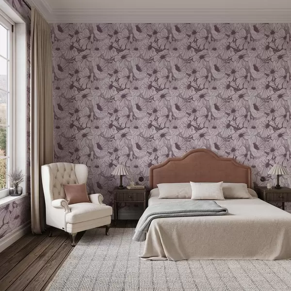 Tapeta Lineární květiny v chladné lila-růžové paletě Nr. a00636v1