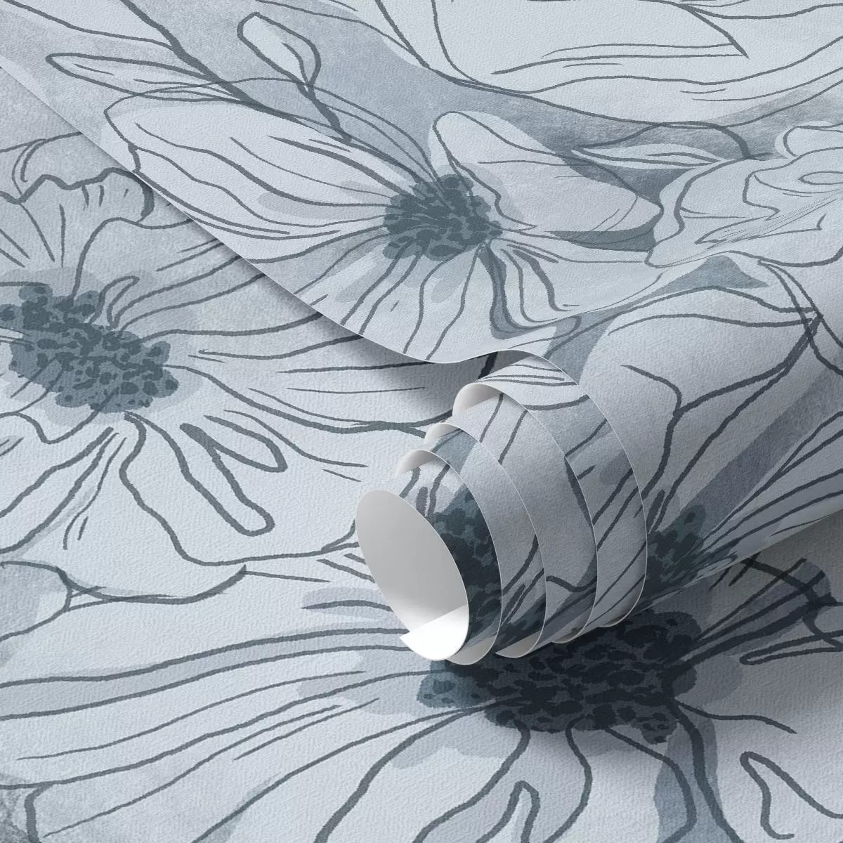 Tapeta Lineární květiny v chladné šedo-modré paletě Nr. a00636v2