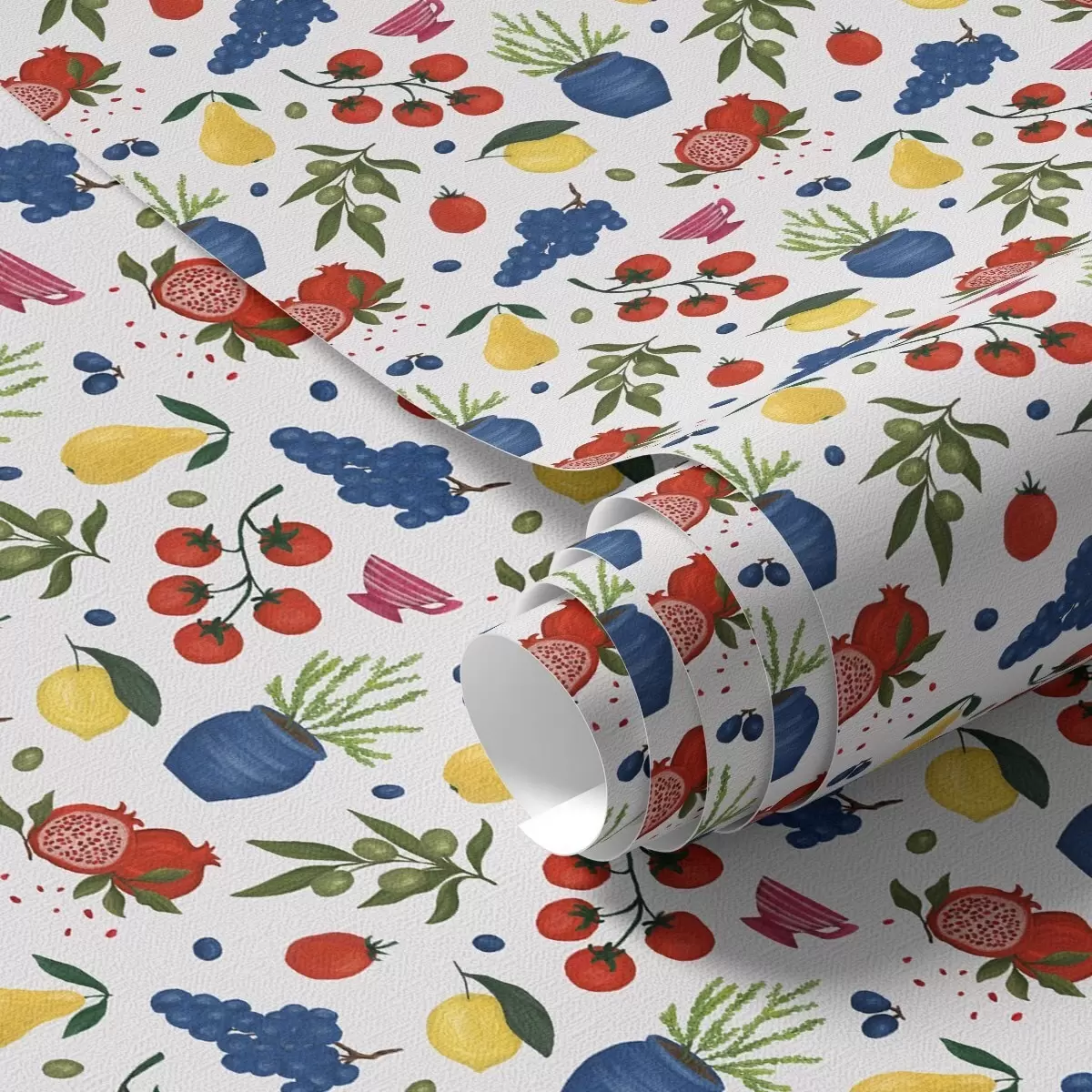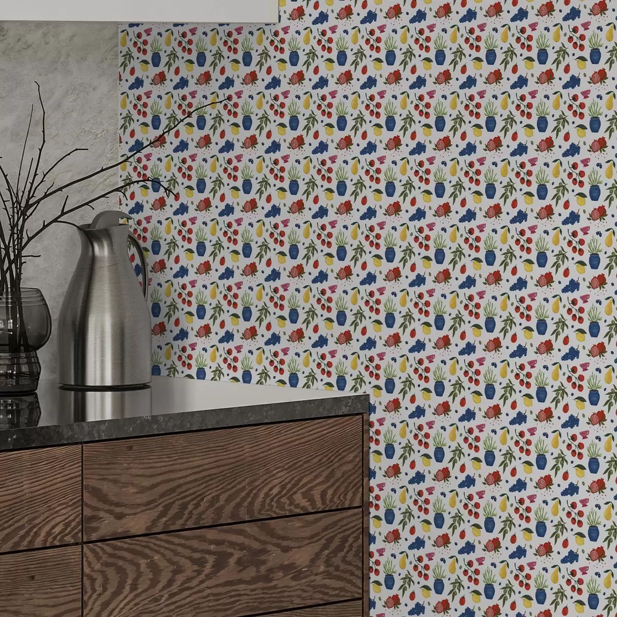 Tapeta Jasný ovocný botanický vzor na bílém pozadí Nr. a00637v1