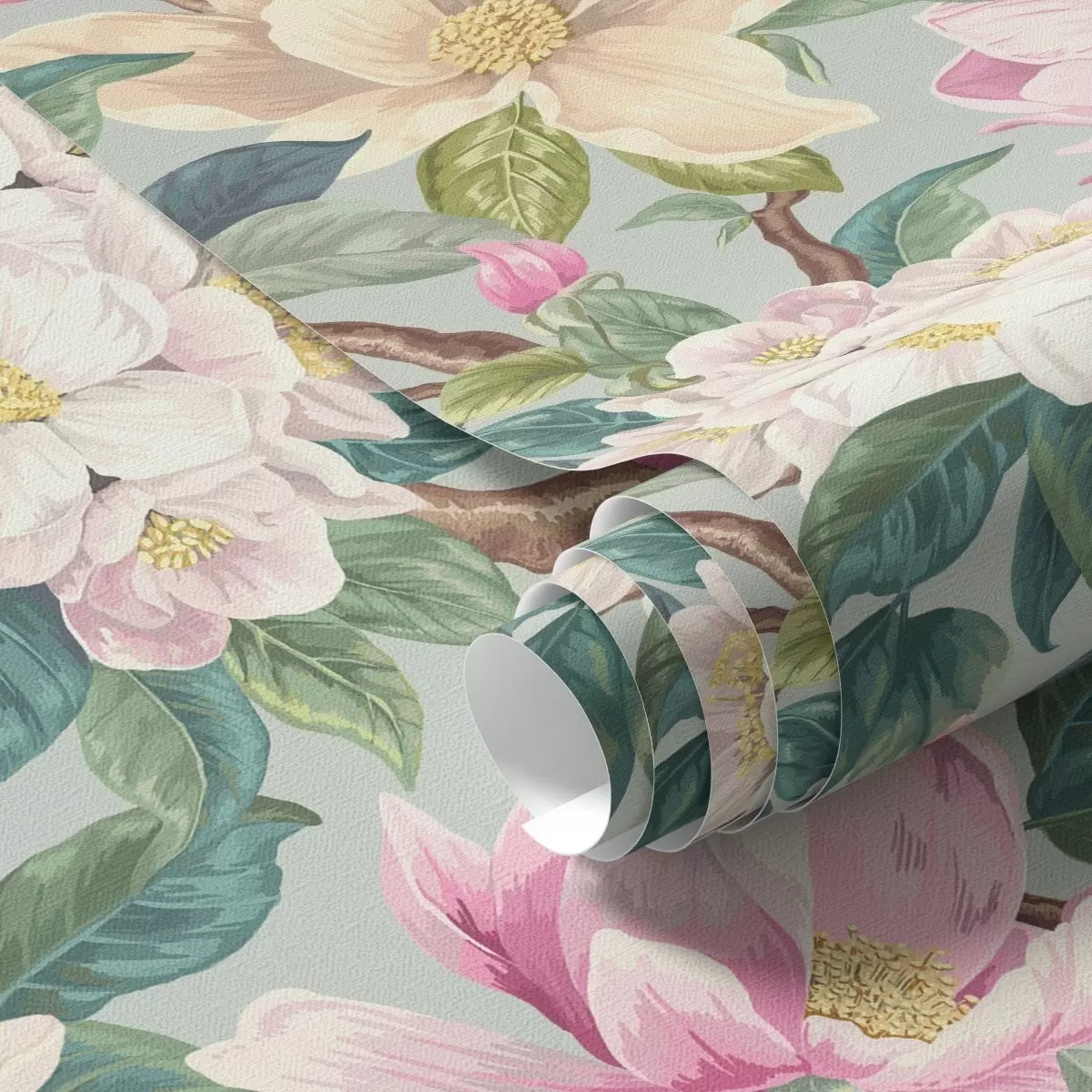 Tapety Magnólie a bílé květy na mátově šedém pozadí a00644