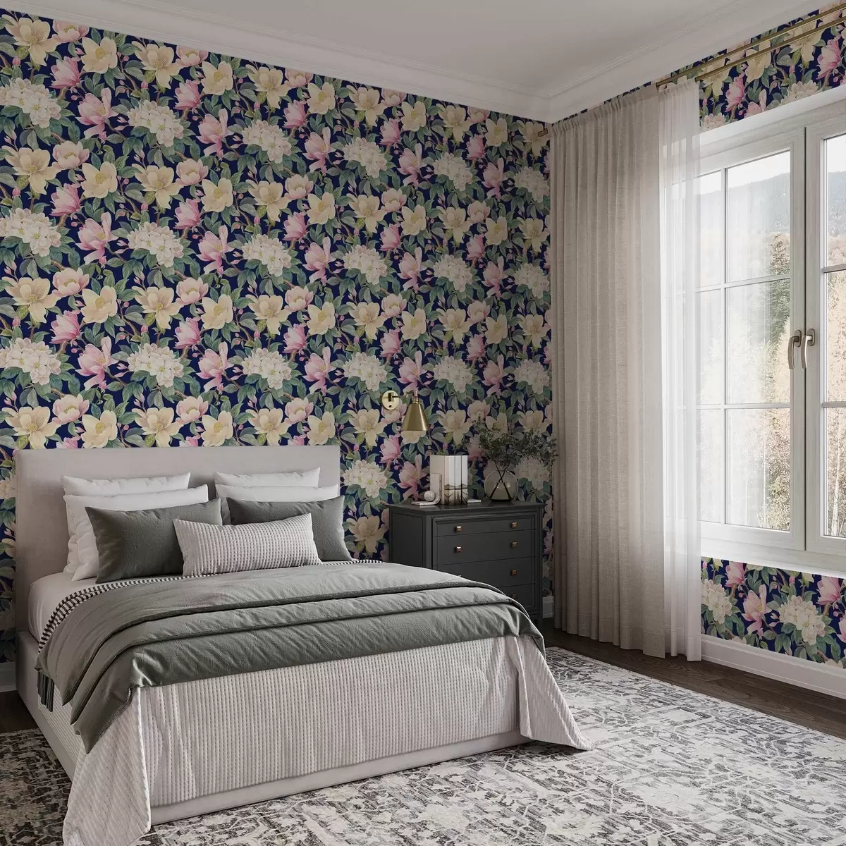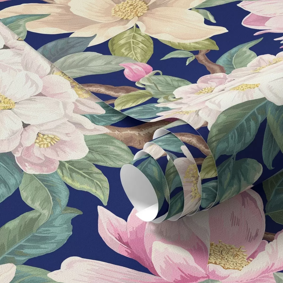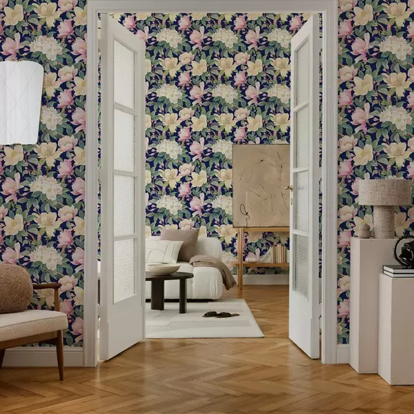 Tapeta Magnólie a pupeny na tmavě modrém pozadí Nr. a00644v1