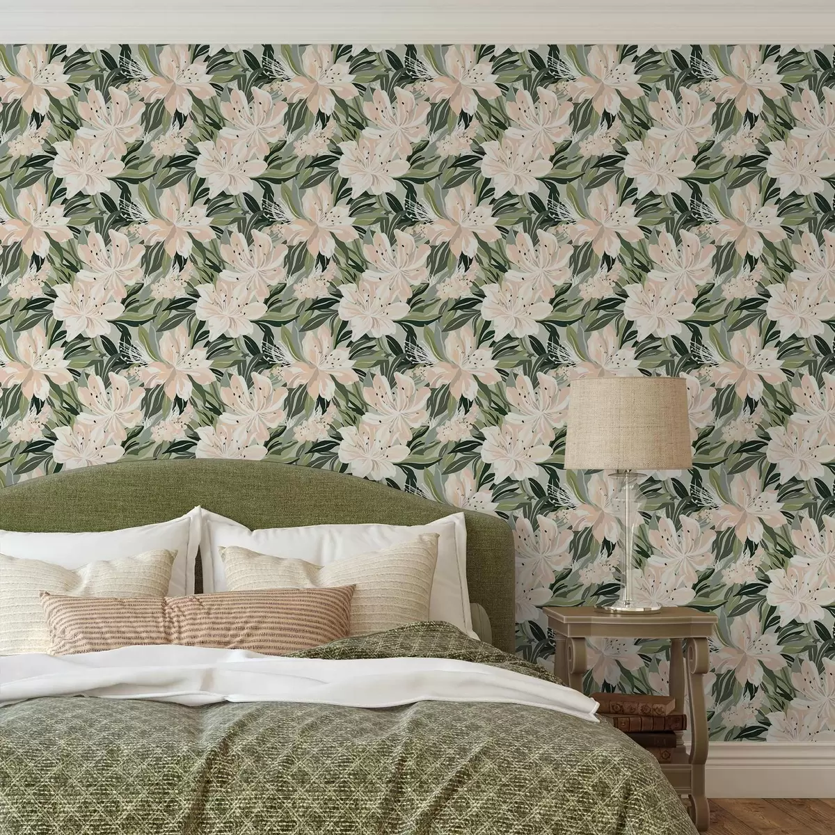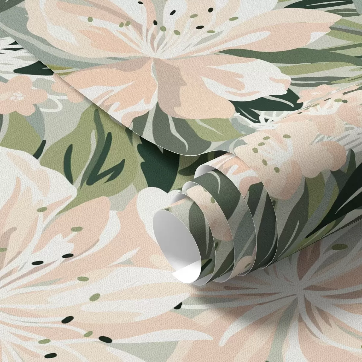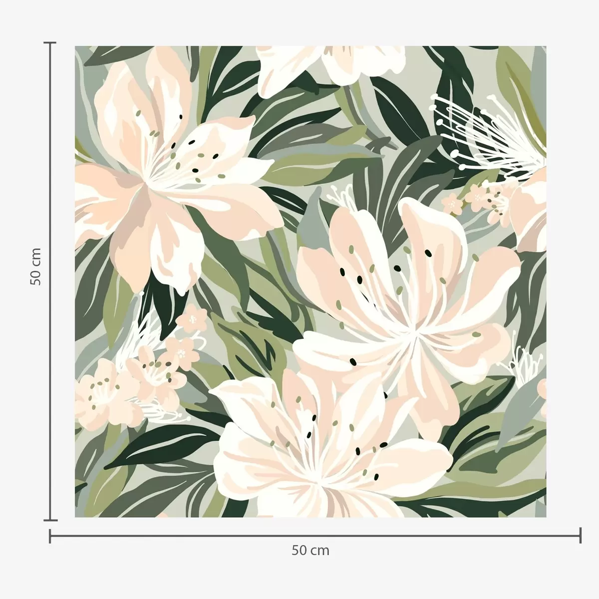 Tapeta Velké krémové květy na světle zeleném pozadí Nr. a00646