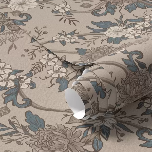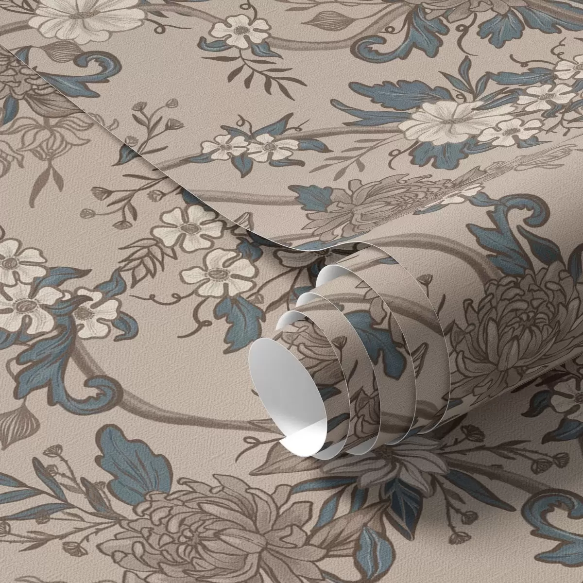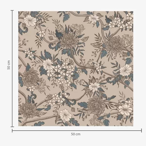 Tapeta Velké květy s vzorovanými listy na teplém béžovém pozadí Nr. a00649