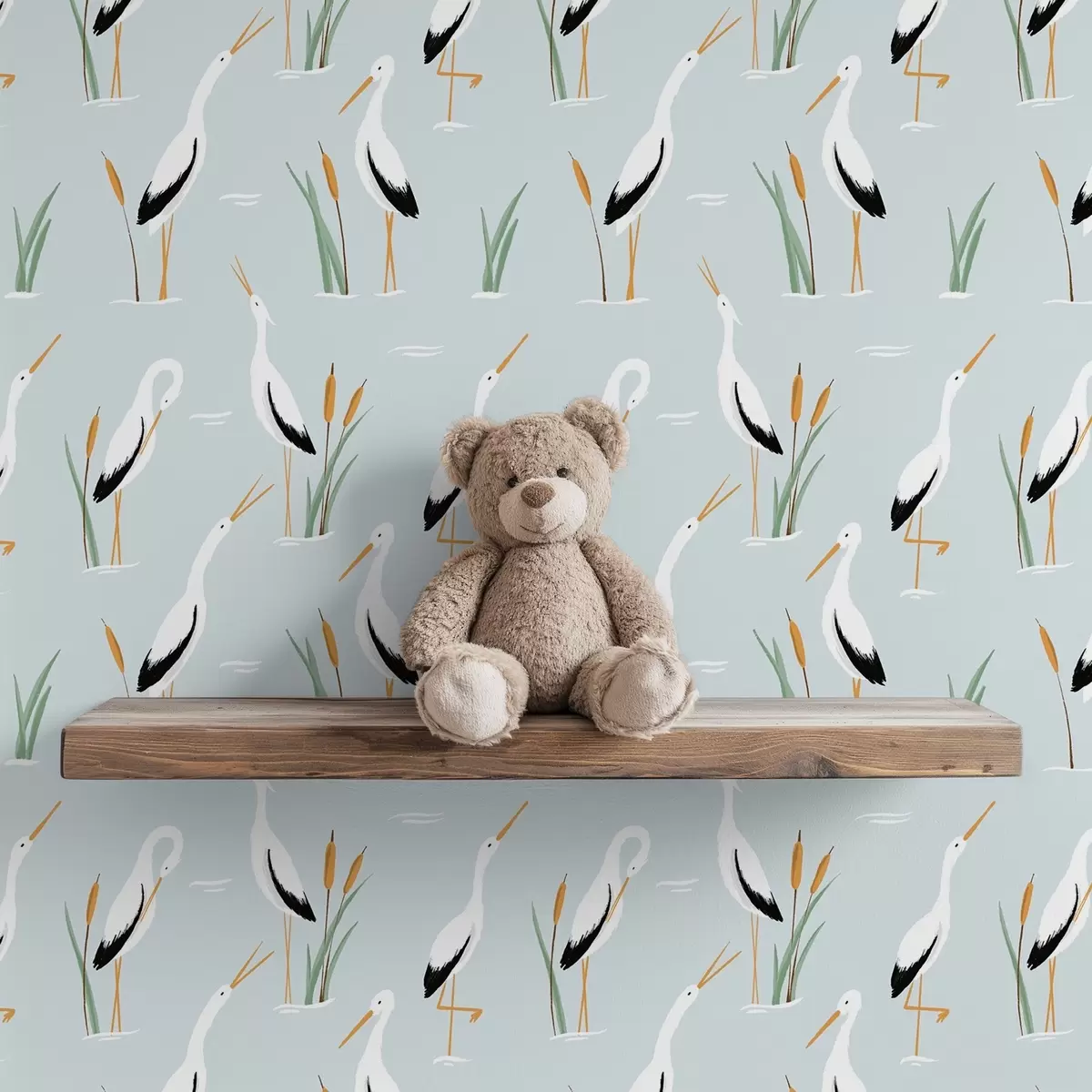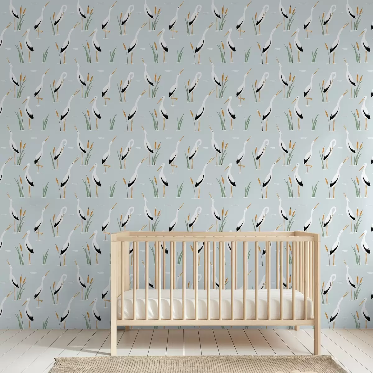 Tapeta Volavky mezi rákosím na jemně modrém pozadí Nr. a00650v1
