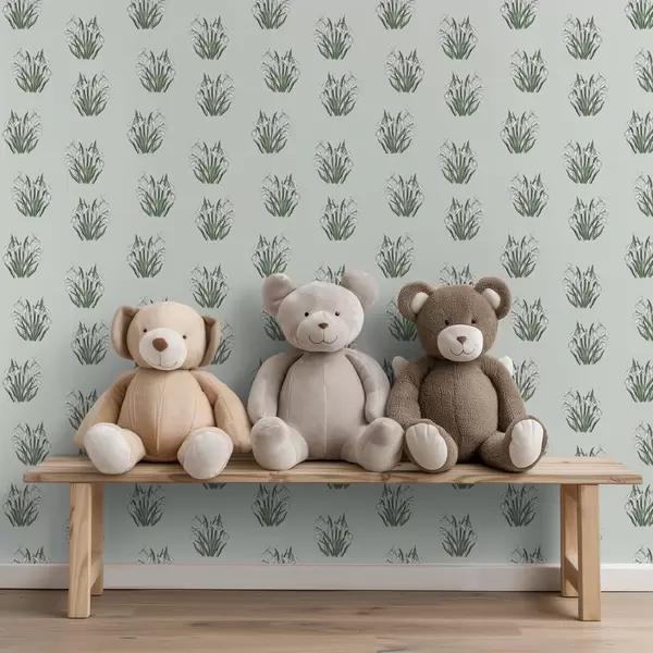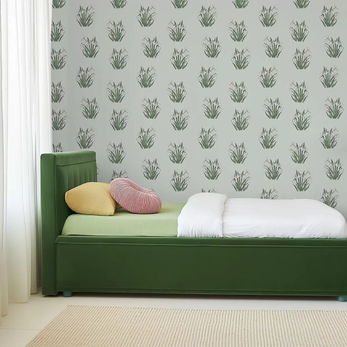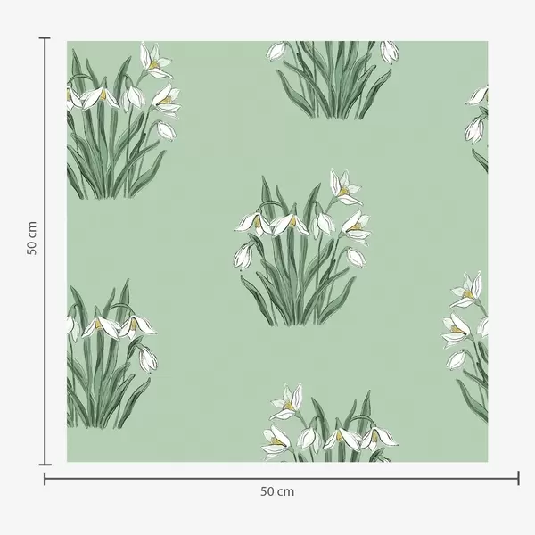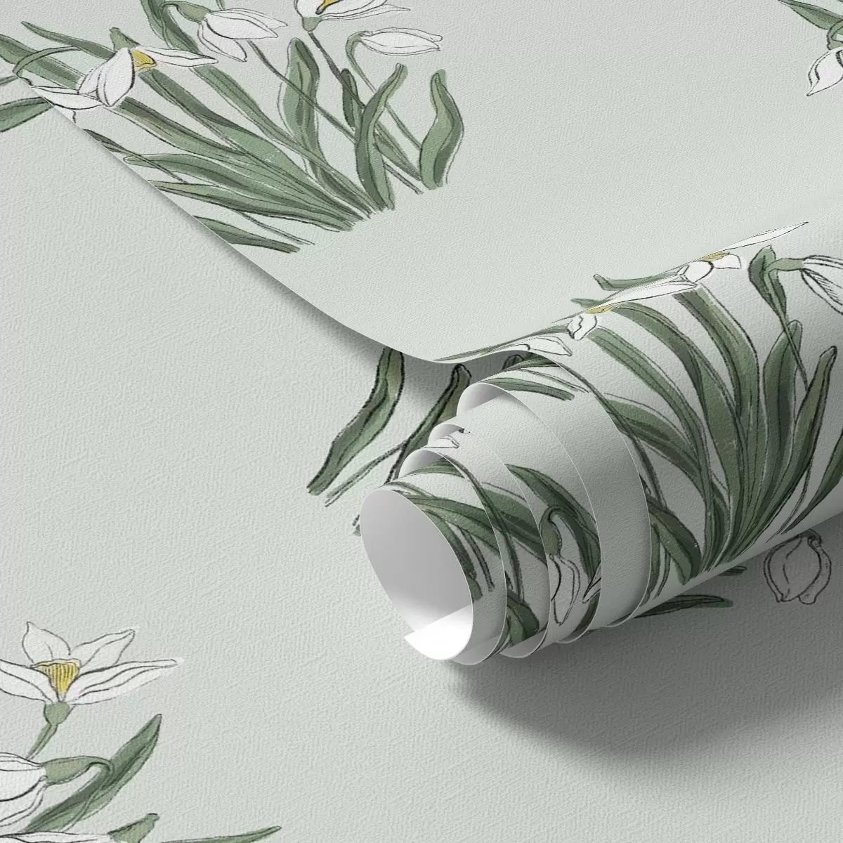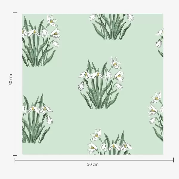 Tapeta Sněženky se zelenými listy na pastelově zeleném pozadí Nr. a00651