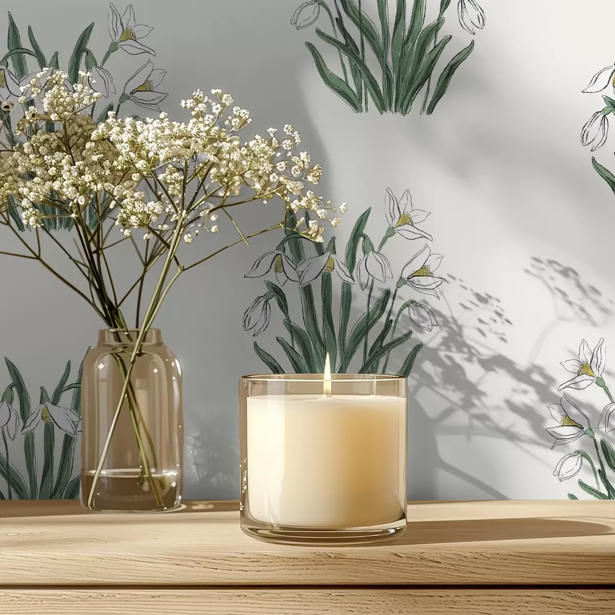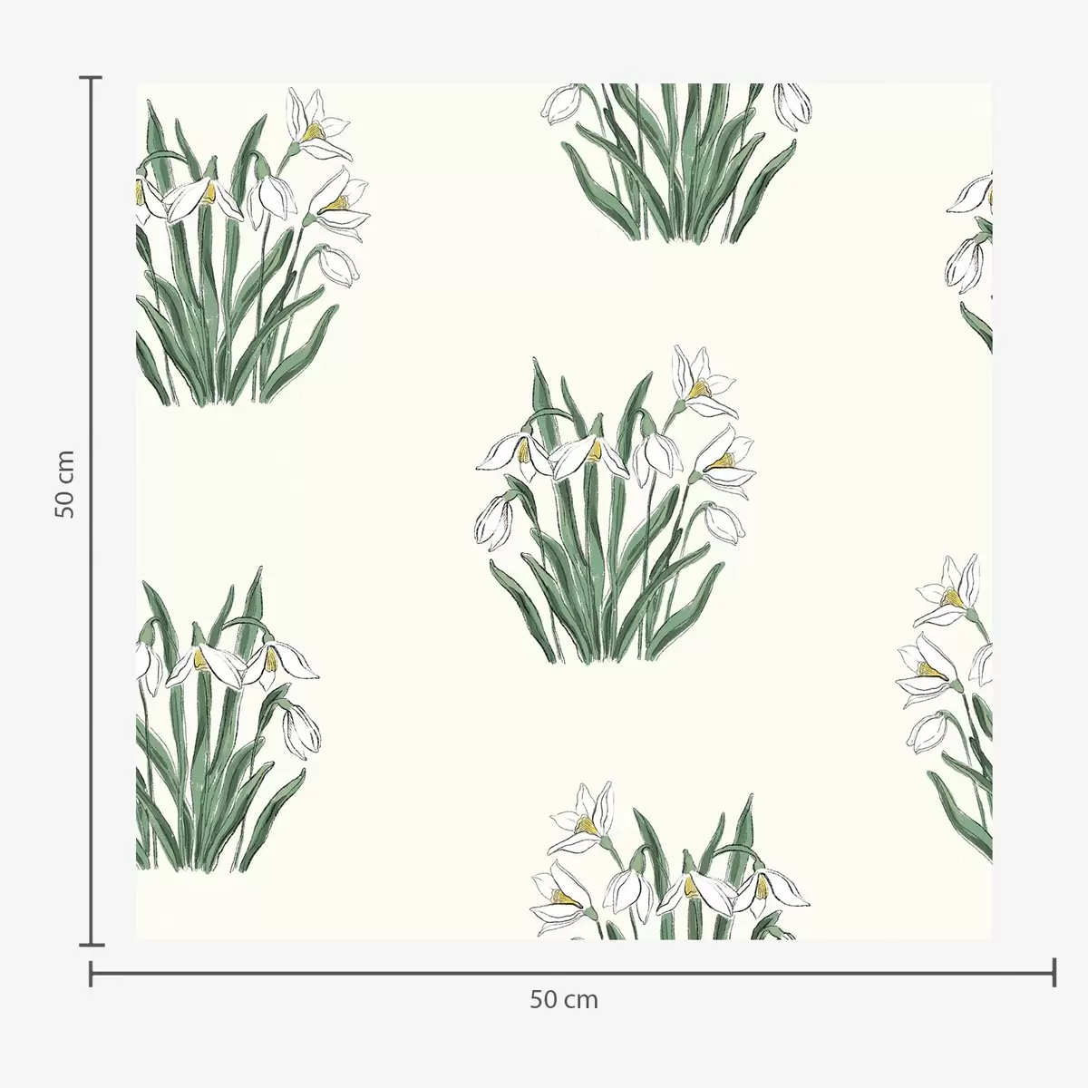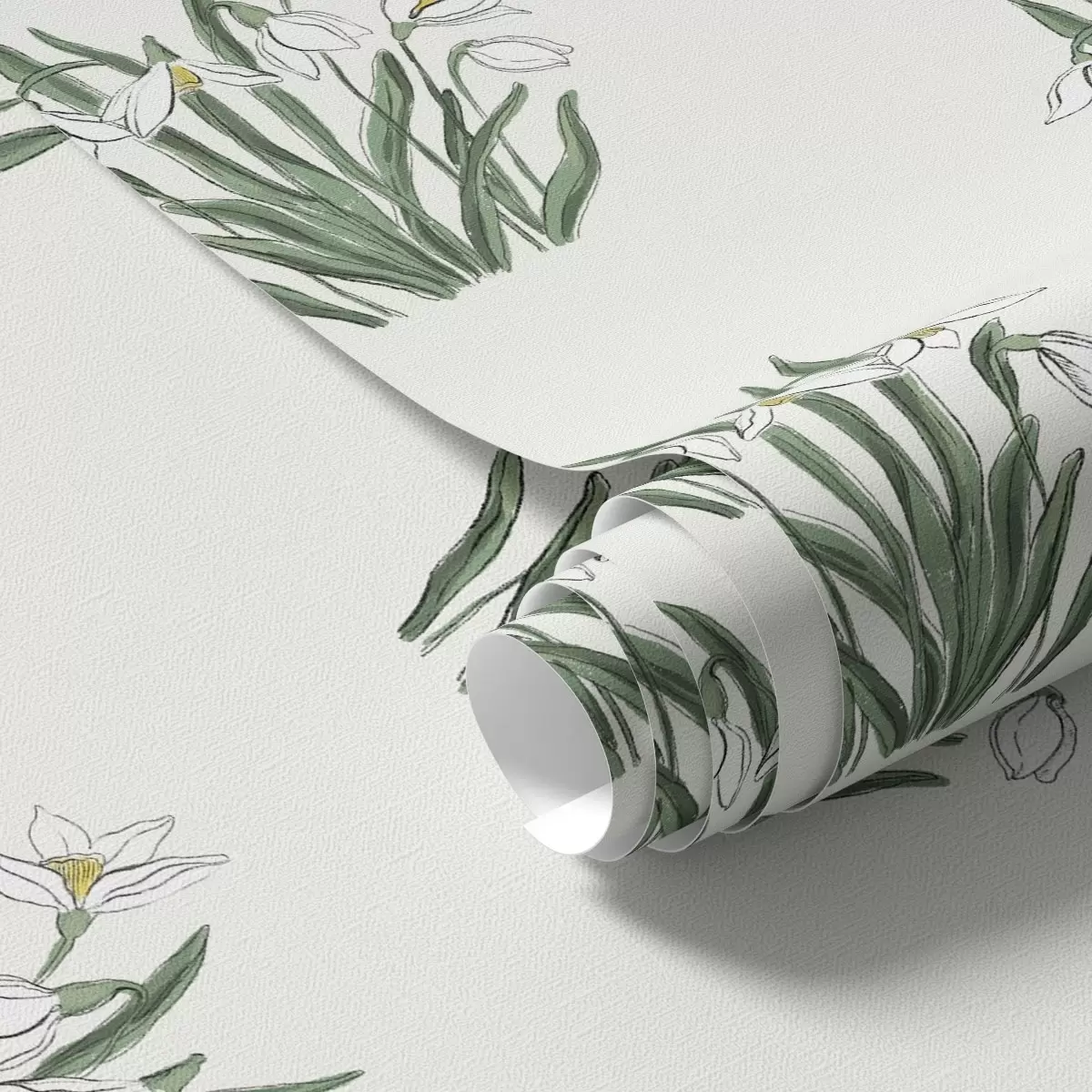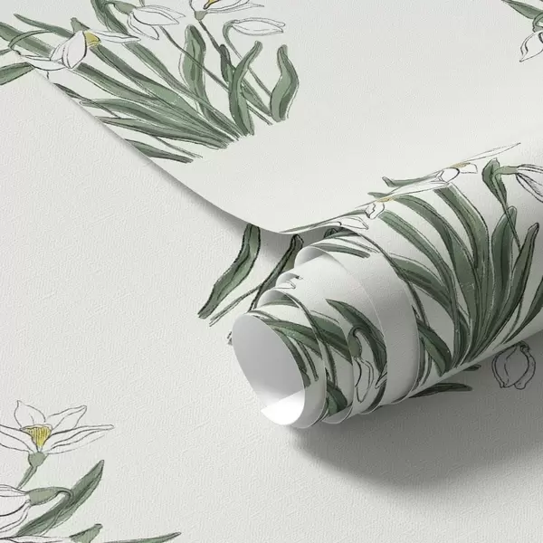 Tapeta Sněženky se zelenými listy na světle šedém pozadí Nr. a00651v1