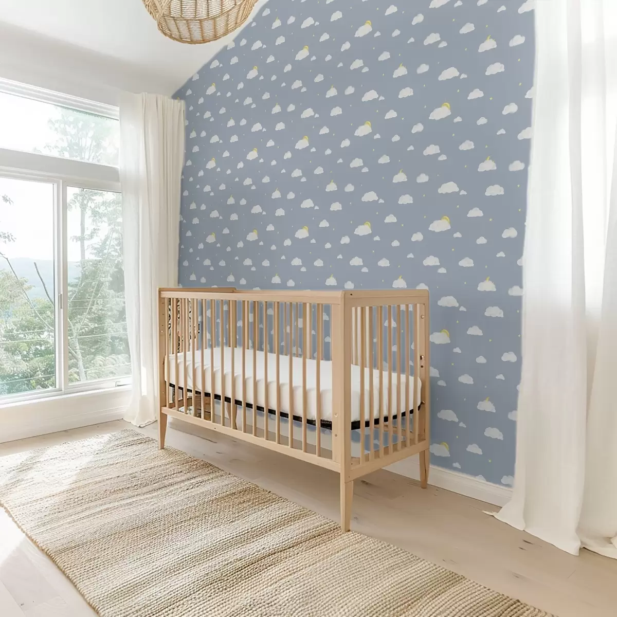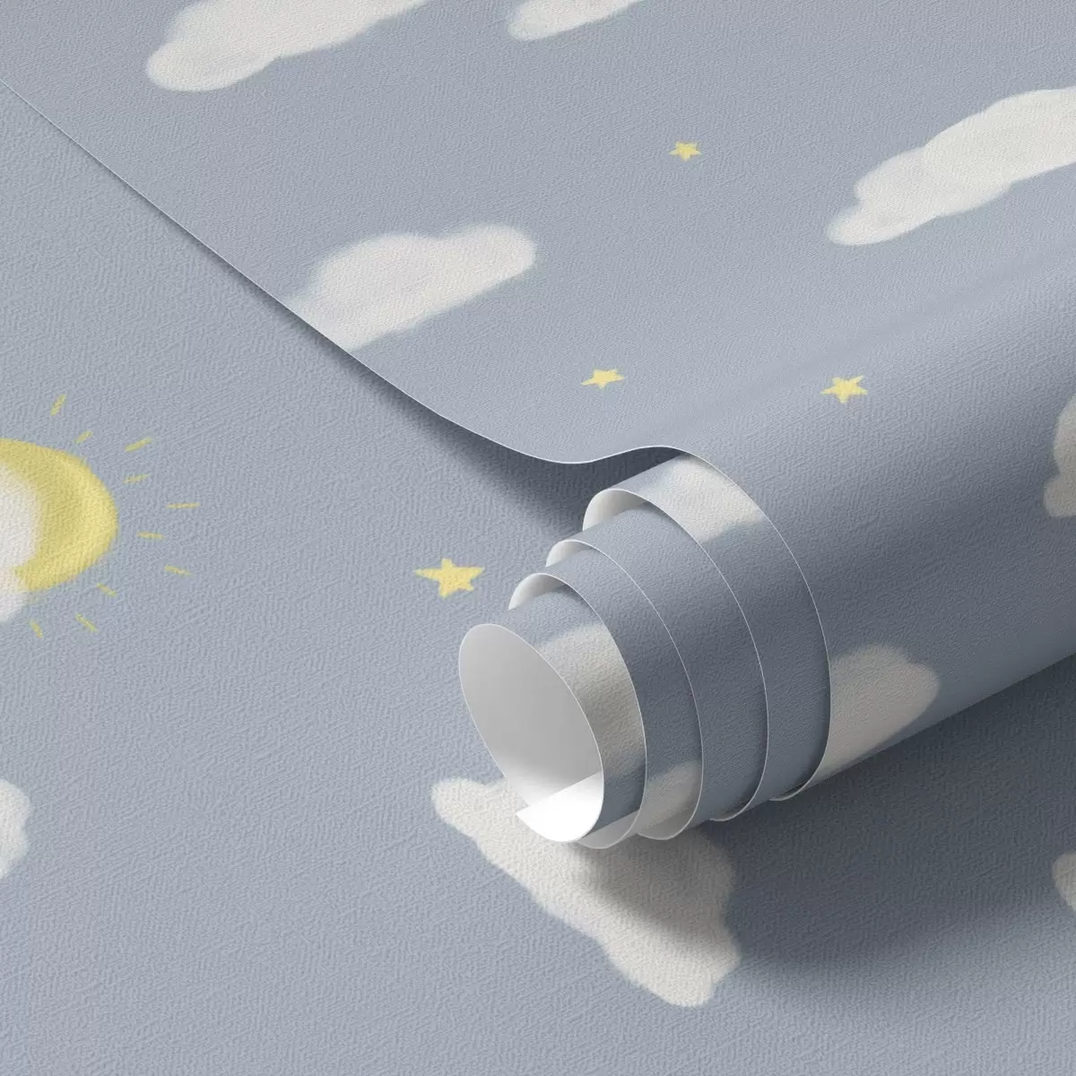 Tapeta Měkké mraky, hvězdy a slunce na modrém pozadí Nr. a00652