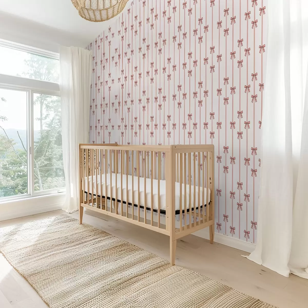 Tapeta Vertikální stuhy s mašlemi, teplá béžová barva Nr. a00653v1