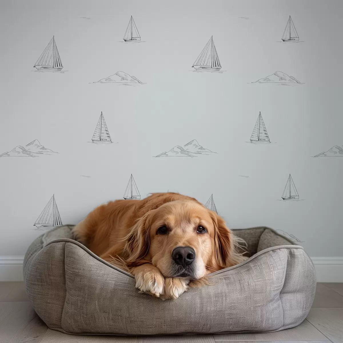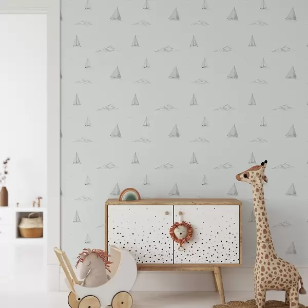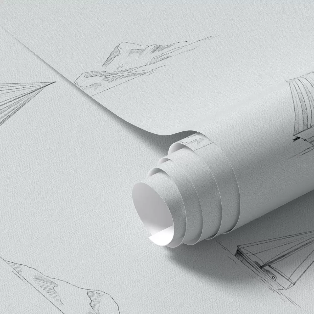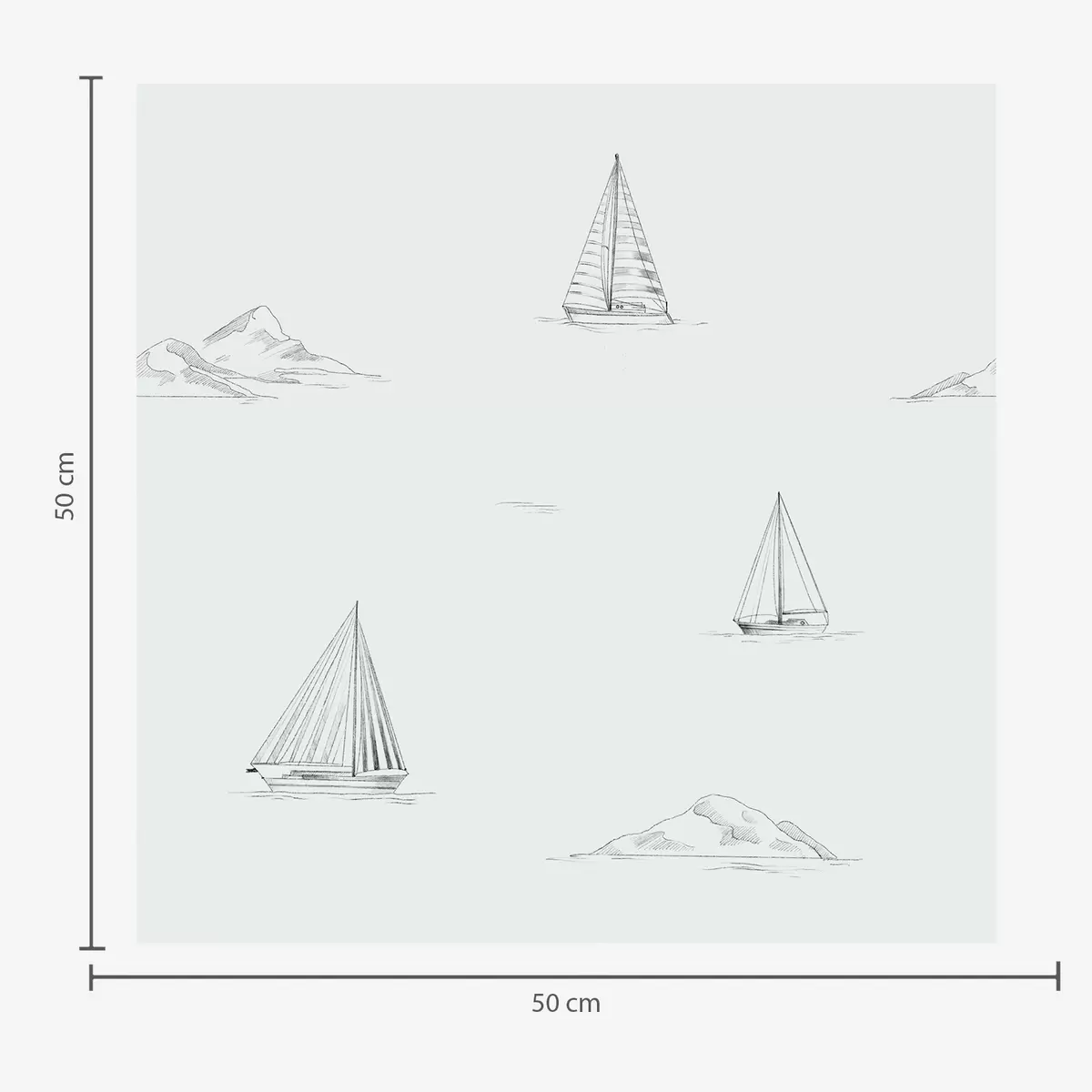 Tapeta Nakreslete jachty a ostrovy, chladné modrošedé pozadí Nr. a00654