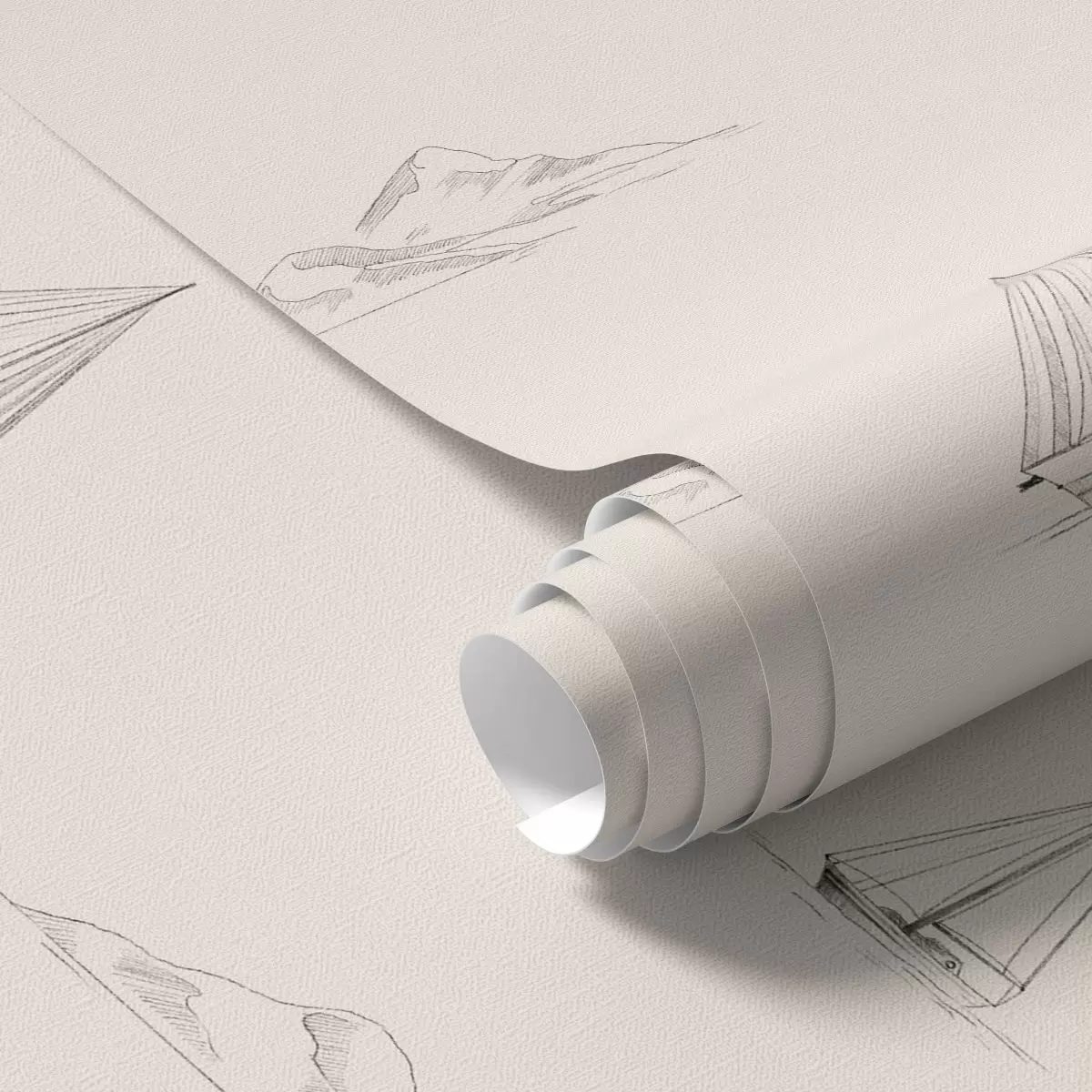 Tapeta Náčrt jachet a ostrovů, teplé krémové pozadí Nr. a00654v1