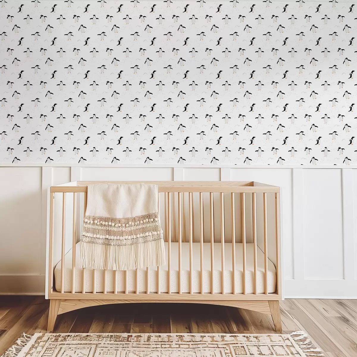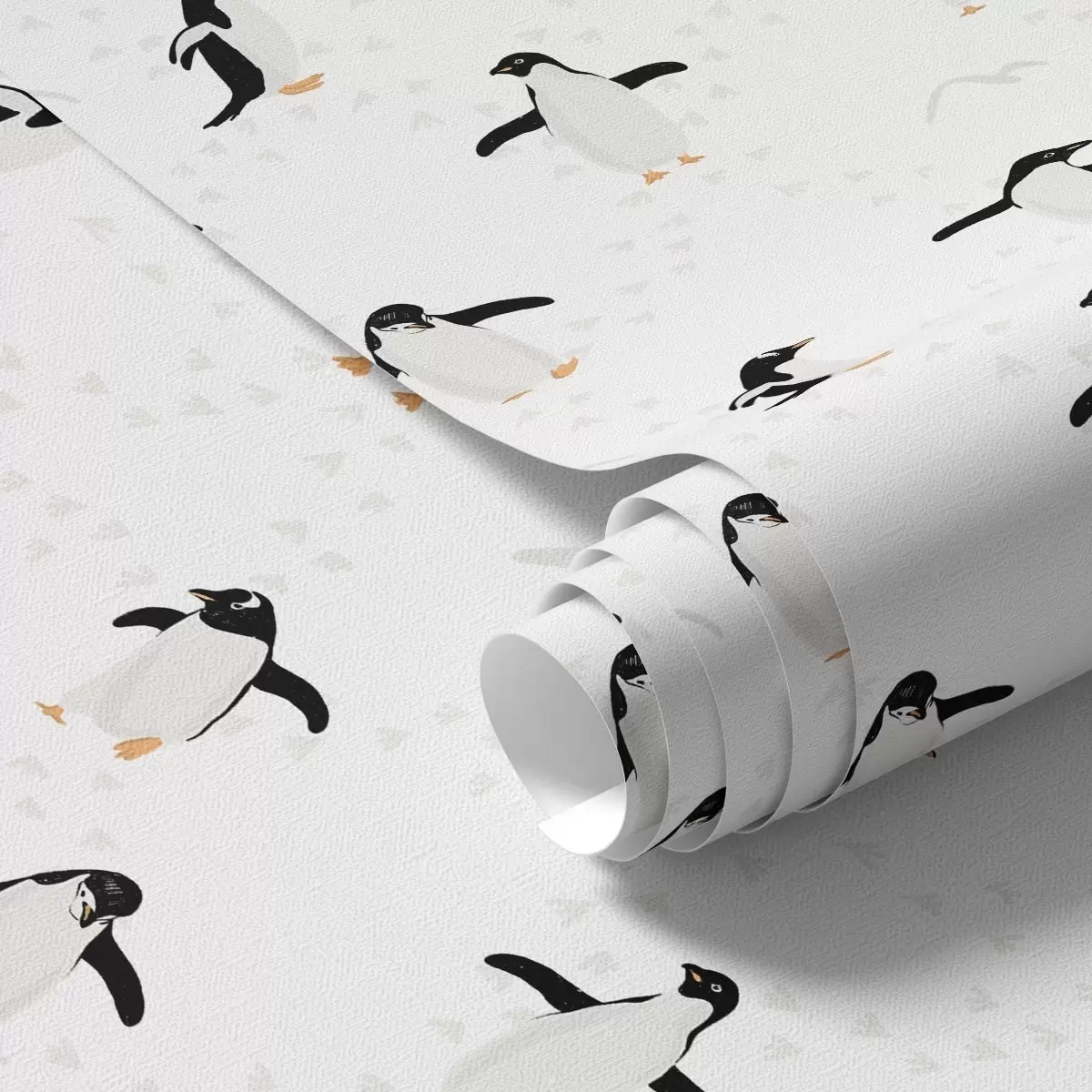 Tapeta Tučňáci na bílém pozadí s otisky nohou Nr. a00655v1