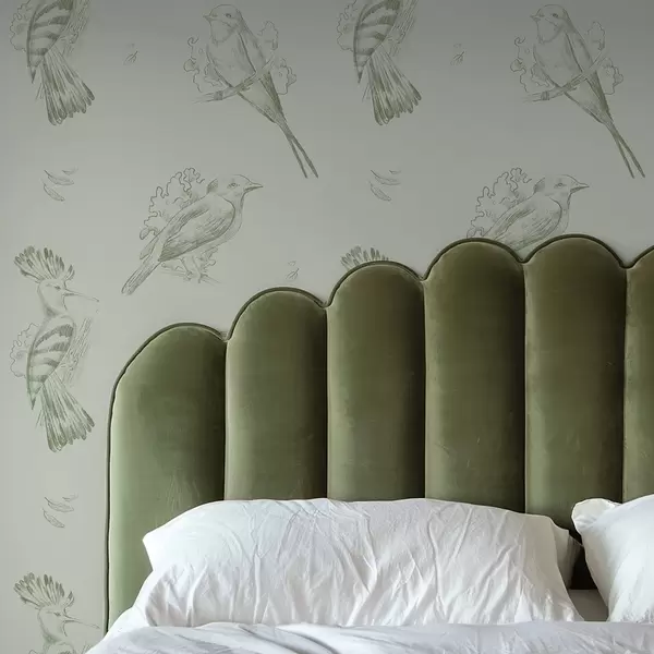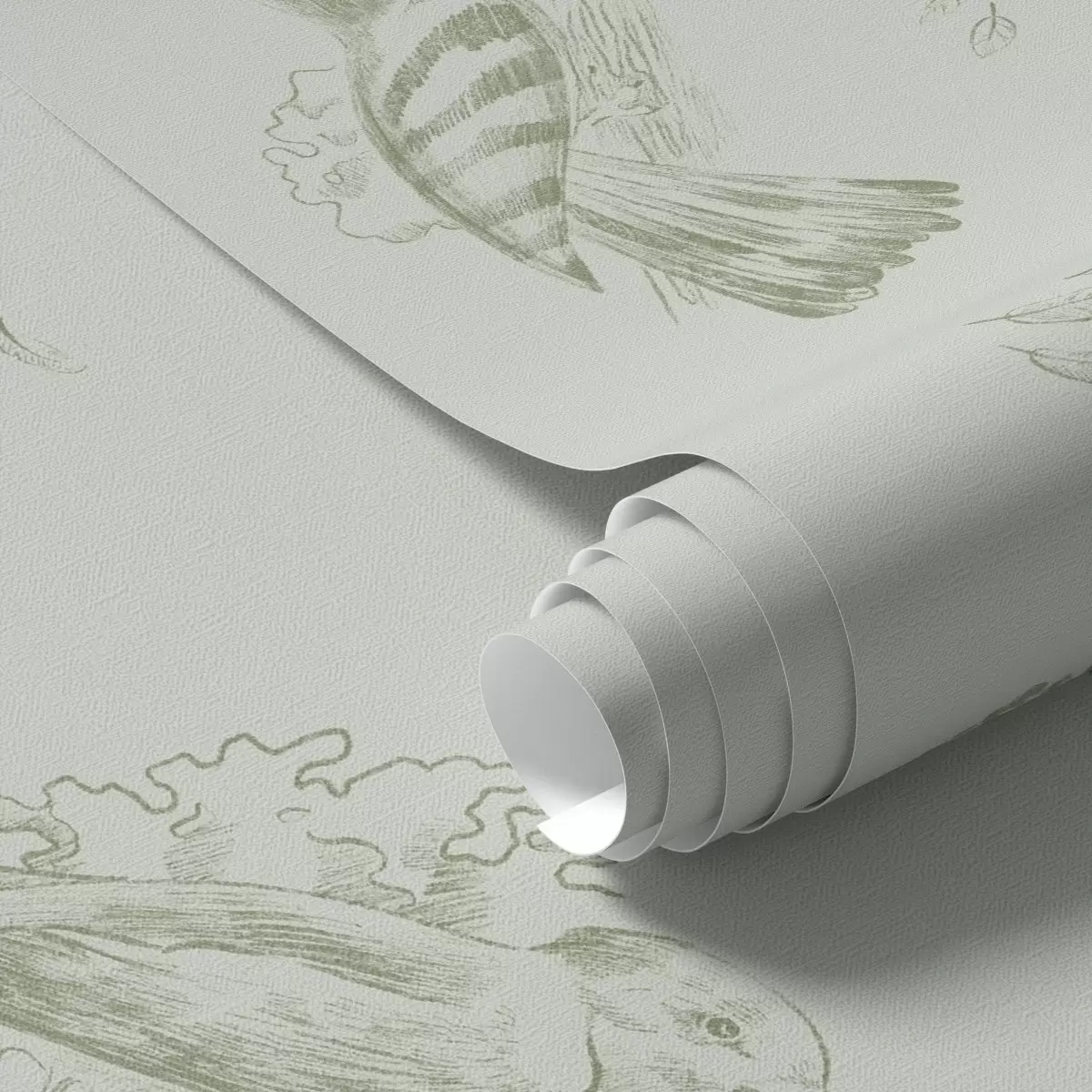 Tapeta Ptačí toile: náčrtky ptáků na šedozeleném pozadí Nr. a00656v1