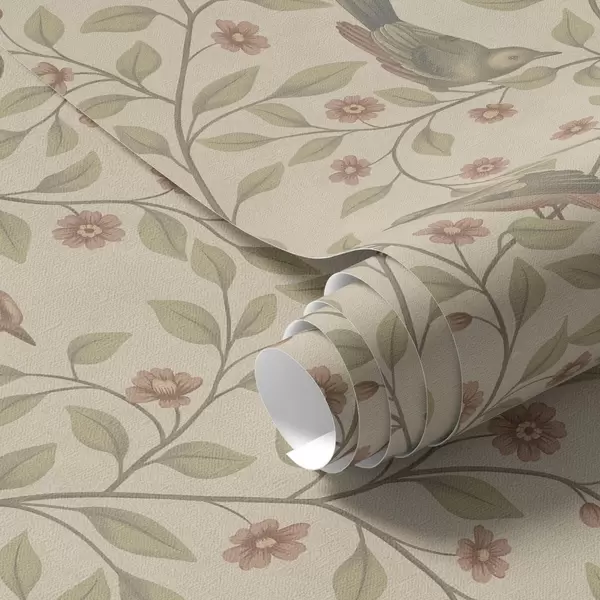 Tapeta Ptáci na rozkvetlých větvích, teplé béžové pozadí Nr. a00670